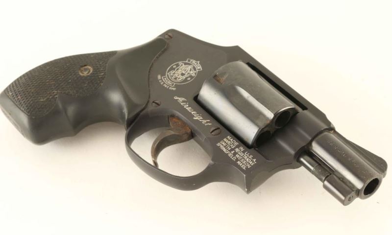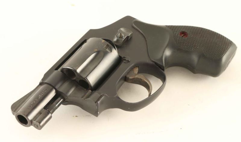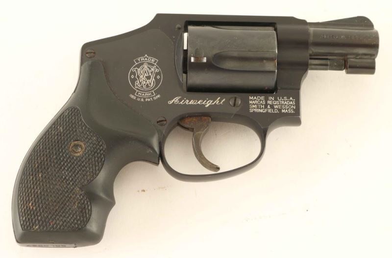 '.38 Special Centennial Airweight' Lightweight small frame double-action-only concealed hammer revolver chambered in .38 Special, manufactured circa 1993-1996. Features a matte blued/black finish, 1 7/8" ribbed barrel, serrated ramp front sight, square notched rear sight, fluted five-shot cylinder, non-shrouded ejector rod, .312" smooth combat trigger, concealed hammer, three screw round butt alloy J frame and two-piece checkered black rubber Boot grips by Uncle Mike's. Revolver retains approximately 90% of it's original finish showing little wear and scattered surface rust. Action is smooth with tight lock-up, the bore is very good, a few of the chambers show light rust and the rubber grips are very good. Condition is NRA Good. ***Modern Firearm***