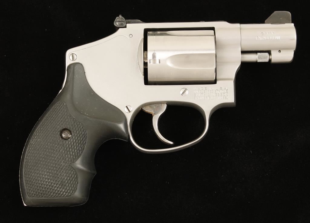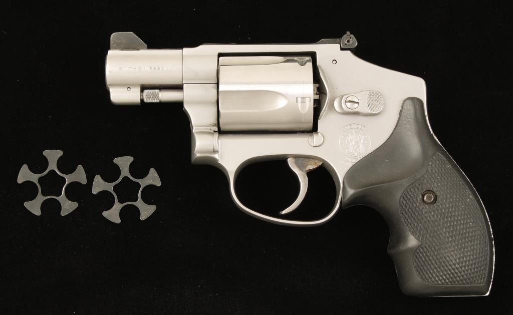 Stainless double-action only hammerless 5-shot revolver with a 1-7/8" barrel and 2 moon clips. Metal finish is matte frame and barrel with some rubs and a scratch on the trigger guard. The back strap is stippled. There is a drag line on the cylinder. Bore and chambers are excellent and the rifling is strong. Action is smooth and lock-up is good. Condition is excellent. *Modern Firearm*