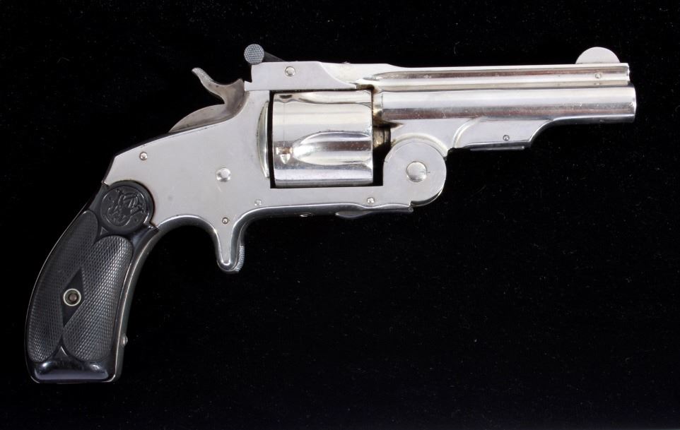 For your bidding pleasure is a Smith & Wesson "Baby Russian" revolver. The Baby Russian as it is nicknamed is the Smith & Wesson 1st Model No. 2 revolver. Chambered in 38 S&W, this five shot single action revolver is in great shape for its age. Pinned blade front and notch rear sights, with the 2 line address/ patent dates reading "Smith & Wesson Springfield Mass USA Pat'd Jan. 17& 24, 65" and "July 11, 65. Aug 24, 69. Jan. 19 1875. Reissue July 25 1871" on top of the rib. Matching numbers are present on the frame, barrel latch and cylinder. Hammer and trigger are checkered, and the grips are checkered with diamond patterns around the screw and "S&W." in circles at the top. This gun is an Antique and an FFL is not required.
