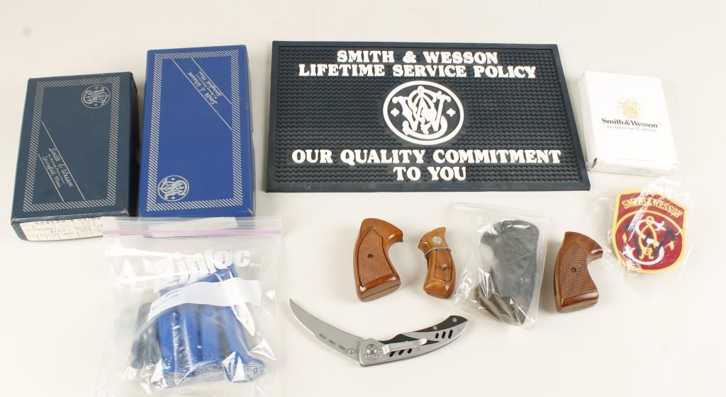 Includes a box for a model 60 & 63, grips, manuals, rubber mat, Xtreme Ops knife, flask, and more.