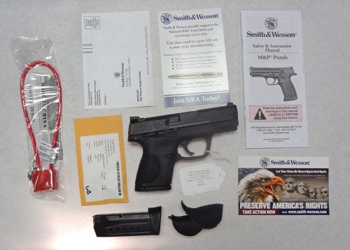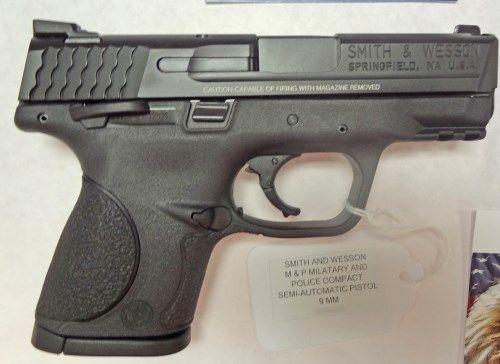 Smith & Wesson M&P Military & Police Compact, Thumb Sfty Model Semi-Auto Pistol 9MM. Finish-Black Melonite Finished Stainless Steel Slide, Action-Double Action Only (Striker Fired Action), Stock-Black Polymer, 3 Interchangeable Grip Sizes, Capacity-12+1, # of Mags-2, Safety-Passive Trigger, Striker Block Safety, Sights-FT: White Dot Dovetail Rr: Low Profile Carry, Barrel Length-3.5", Overall Length-6.7", Weight-21.7 oz, Features-Ambidextrous Slide Release, Reversible Mag Catch, No Internal Lock Model, No Mag Safety, Receiver-Polymer with Picatinny-Style Rail. Comes with a lifetime Guarantee. Est 575.00-625.00