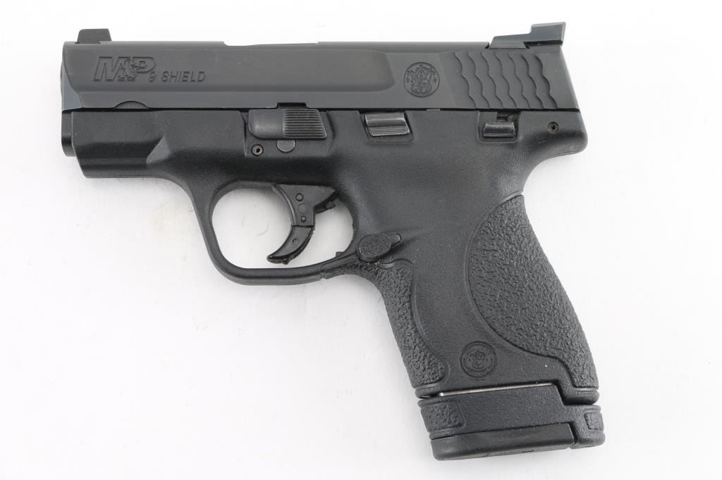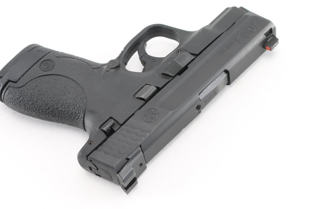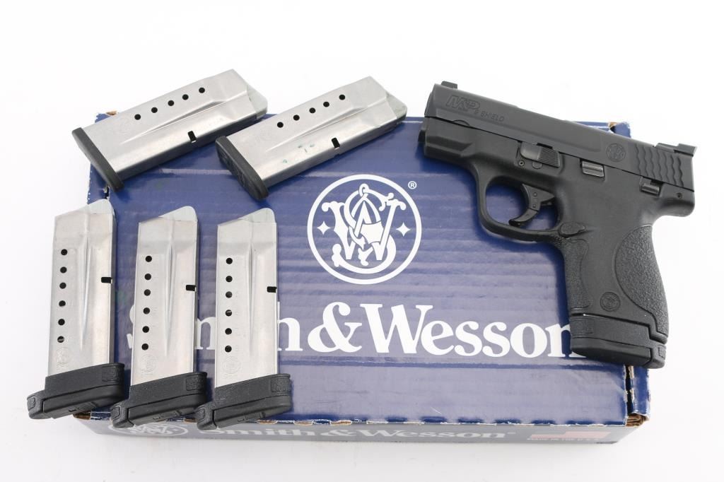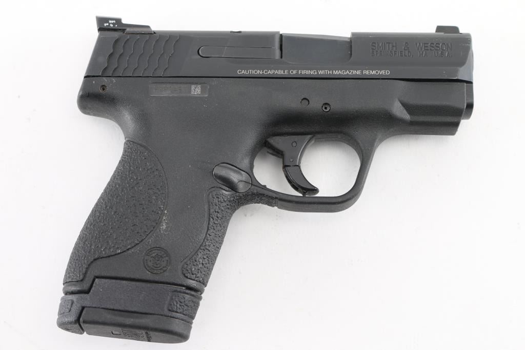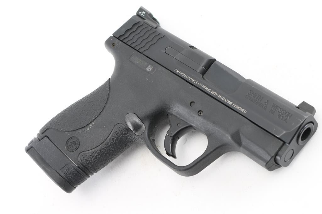 American made compact semiautomatic pistol features matte black finish on metal parts, black polymer frame, double action only striker fired, 3.125" barrel, loaded chamber indication, 3 dot sights in dovetails, frame mounted manual safety, push button magazine release, manual safety built into trigger. Bore is pristine. Retains 95% finish with handling marks, edge losses. Includes (6) magazines (a mix of flush fit 7 round and 8 round extended grip), manual, factory cardboard box. Condition is near NRA Excellent *** Modern Firearm ***