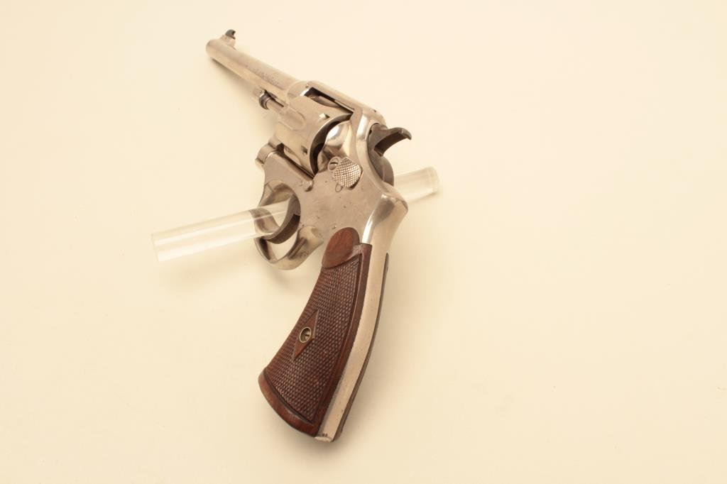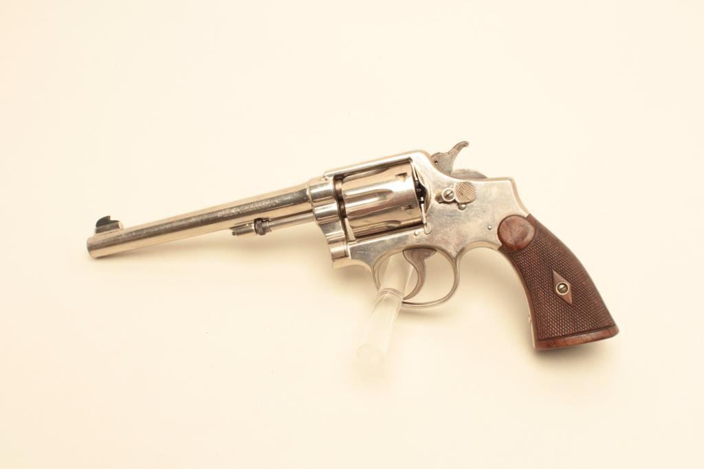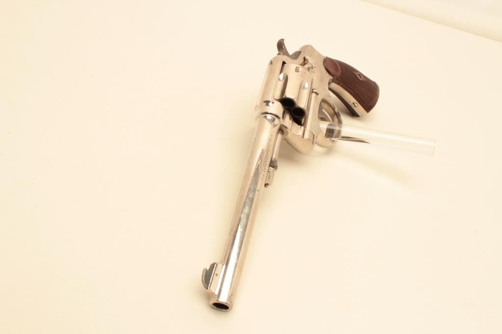 barrel, nickel finish, checkered wood grips, S/N 107012, in overall very good + condition showing the majority of its original factory nickel finish with some slight frosting of finish at rear of frame, very good + bore, crisp action, sharp markings and very good grips. (C&R/PPT). Est.: $350-$700.
