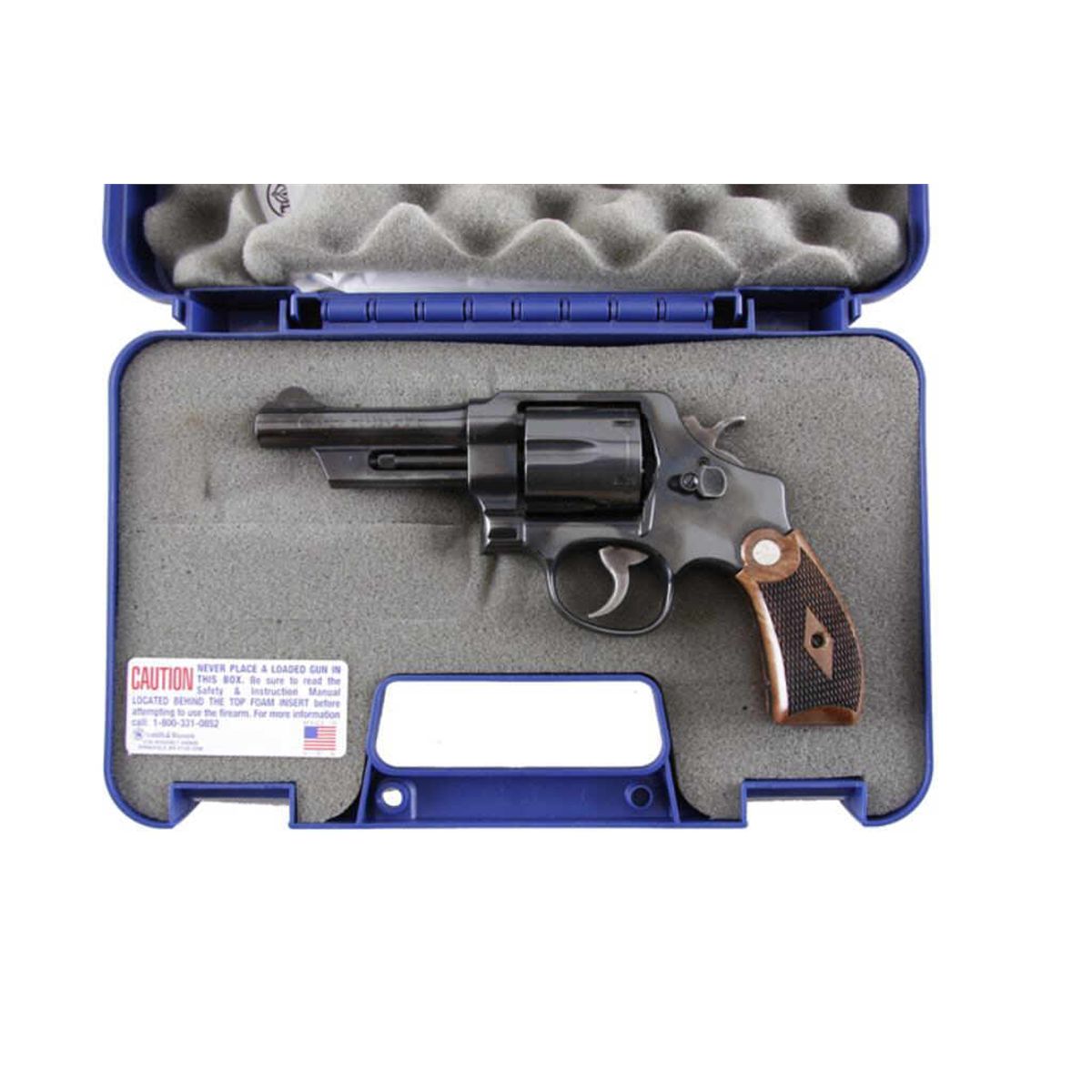 Smith & Wesson Mdl 21-4 Cal .44S&W SN:DAU8850, Double action 6 shot revolver with exposed hammer and built in frame gun lock. Heritage Series gun. All steel construction, blued finish, diamond checkered wood grips, 4 1/4" barrel with fixed sights, goodSN:DAU8850, Double action 6 shot revolver with exposed hammer and built in frame gun lock. Heritage Series gun. All steel construction, blued finish, diamond checkered wood grips, 4 1/4" barrel with fixed sights, good bore and action. In original blue plastic carry case with instructions and external gun lock. Condition: Near new with little sign of use.