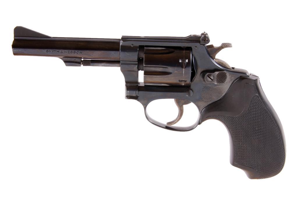 Smith & Wesson Mdl 34-1 Cal .22LR SN:M169192, 4" barrel, blued finish, adjustable sights with Pachmayr grips. Pistol is in fine condition overall, showing the slightest pin pricking starting on the top strap of the frame, and in several spots on the cylinder. Bore is very good, as are the grips.