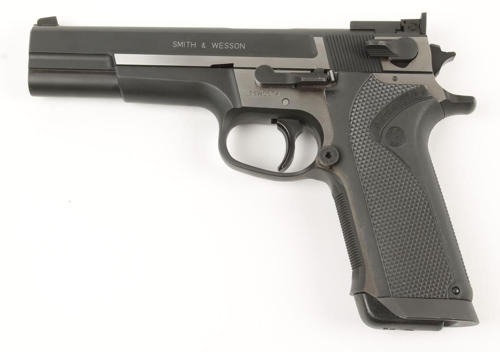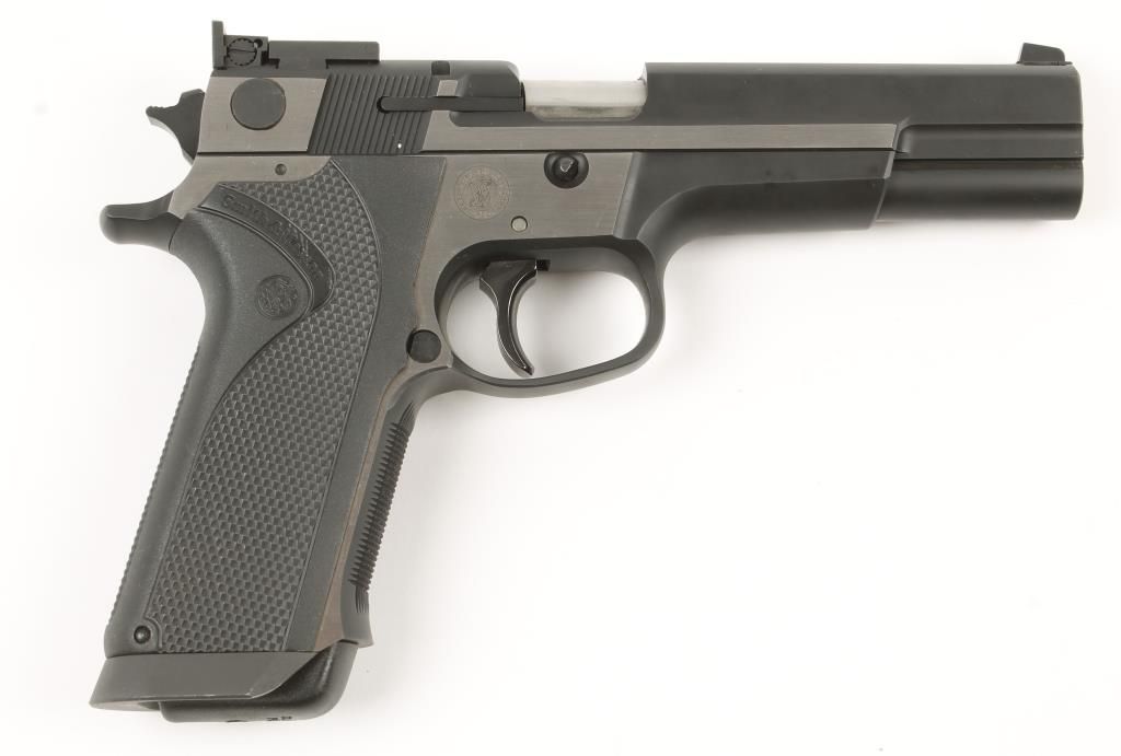 Single action semi auto pistol from the Performance Center with 5" barrel. Blackened steel frame and slide with polished highlights, checkered black Delrin grips, adjustable rear sight and hand fitted slide. Very good bore and action. Includes 1 magazine. Condition: Very good showing very light use. *Modern Firearm*