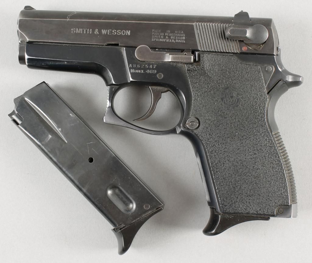 Smith & Wesson Mdl 469 Cal 9mm SN:A862547Double action semi automatic pistol, black alloy frame and