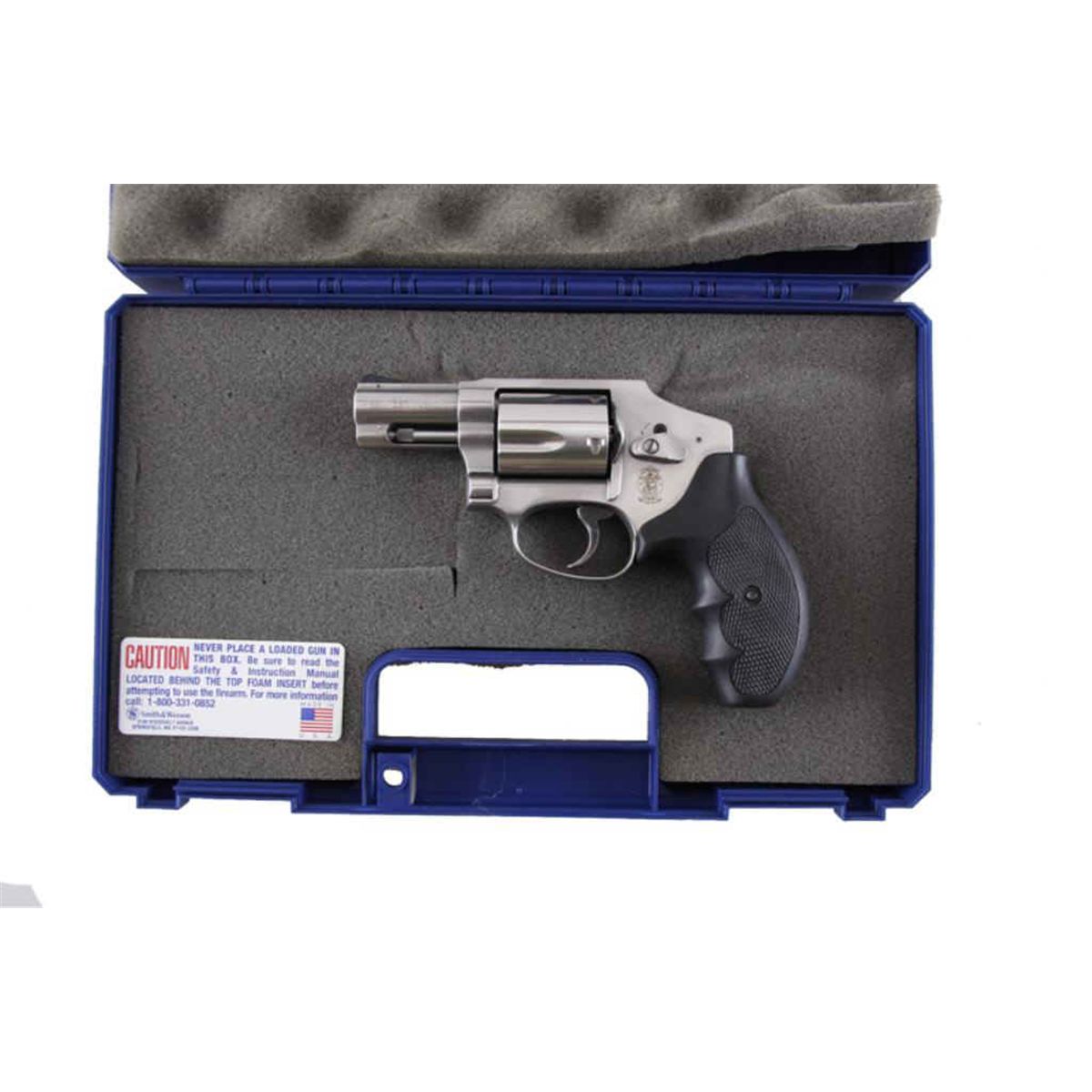 Smith & Wesson Mdl 640-3 Cal .357mag SN:CJL7712, Double action 5 shot concealed carry revolver with internal hammer for no-snag draw. Stainless steel construction, checkered black rubber grips, 2 1/8" barrel with fixed sights, internal gun lock in the rSN:CJL7712, Double action 5 shot concealed carry revolver with internal hammer for no-snag draw. Stainless steel construction, checkered black rubber grips, 2 1/8" barrel with fixed sights, internal gun lock in the left side of the frame. Good bore and action. Included in original blue plastic carry case with instructions and gun lock. Condition: Excellent with little sign of wear.