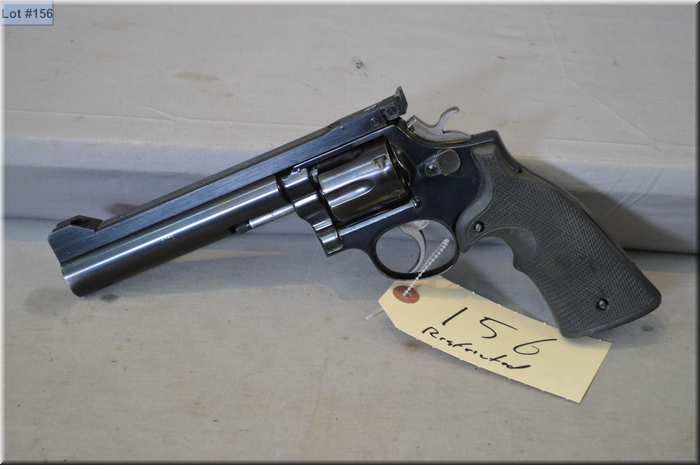 Smith & Wesson Mod 10-5 . 38 Spec cal 6 shot Revolver w/ 152 mm bbl heavy Kiva barrel [ blued finish, Bo-Mar adjustable sights w/rail , slight cylinder ring, checkered rubber grips ] Ser # C620192 - 73842 on crane Restricted Cert # 5696971