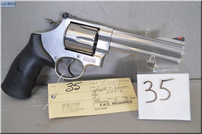 Smith & Wesson Mod 626 - 6 . 44 Mag 6 Shot Revolver w/ 127 mm bbl [ stainless w/ adjustable rear sight, Smith & Wesson rubber grips, appears excellent ] Ser # CUE 7594 * Restricted Handgun Cert # 17665080