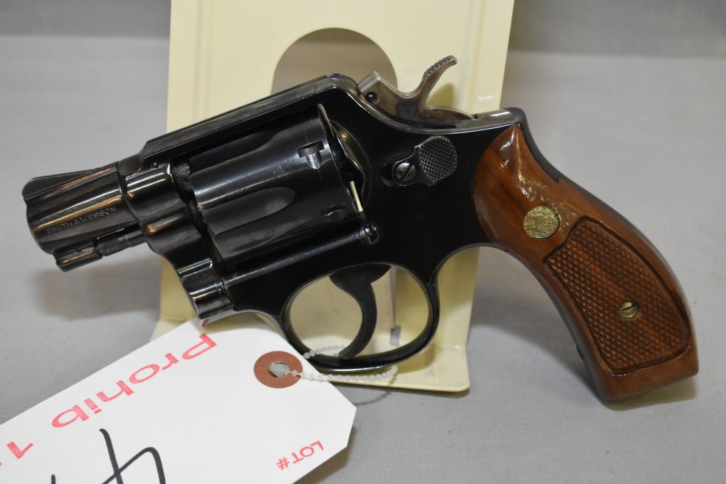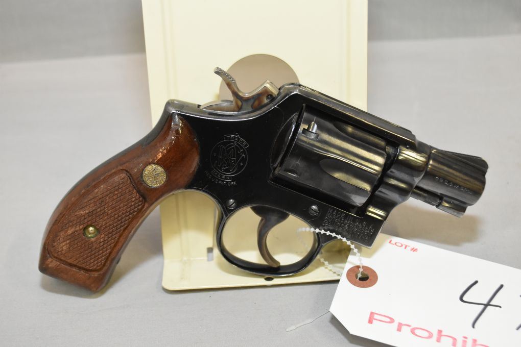Smith & Wesson Model 10 - 5 .38 Spec Cal 6 Shot Revolver w/ 51 mm bbl [ blued finish, fixed back sight, slight cylinder ring, case colored trigger & hammer , slightly worn checkered walnut Smith & Wesson insignia grips ] Ser # D300860 12 - 6 Prohib Cert # 2837219 EXPECTS SOME DELAYS IN TRANSFER