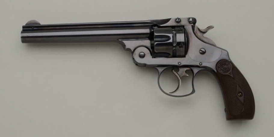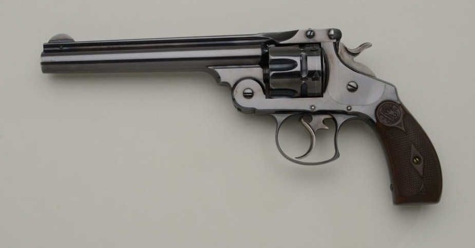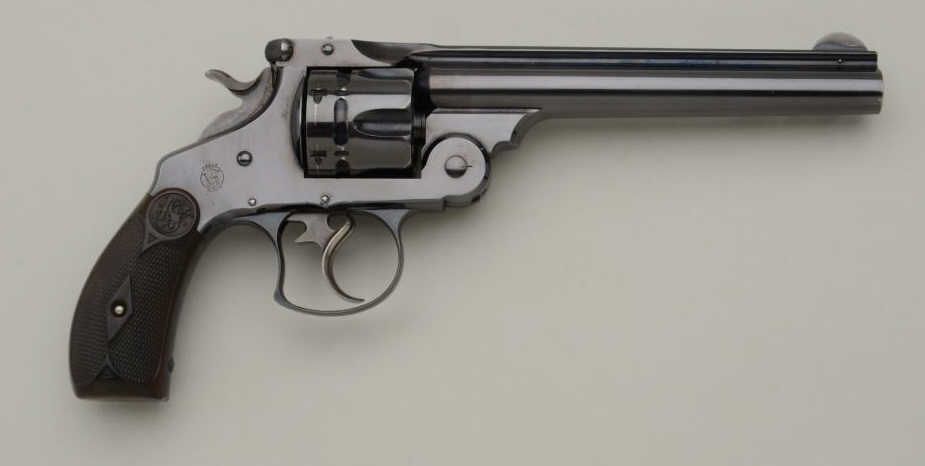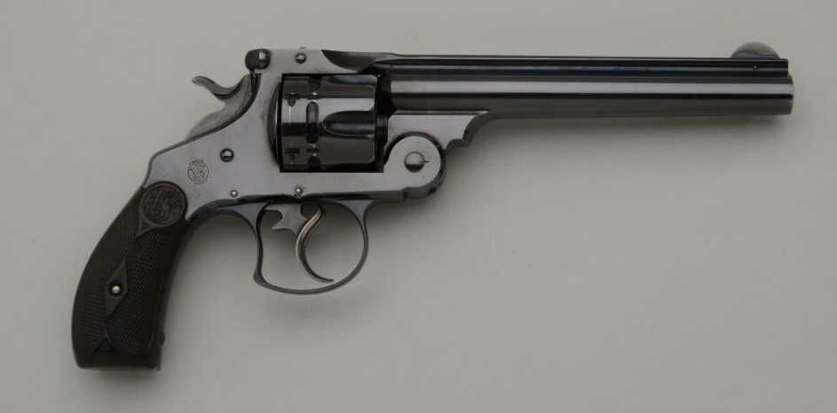 Smith & Wesson Model 1881 double action frontier revolver in .44 S&W caliber showing 6 ½” barrel, blue finish, hard rubber grips, serial number 36902. The revolver remains in fine to excellent condition showing 95% to98% original bright blue. Some slight losses at the high points and edges with a minor index line on the back of the cylinder. The hammer and trigger show 70% to 80% case hardening that is dulling slightly. The grips are fine to near excellent and the edges and markings are super crisp. The action is tight and the bore is bright and near excellent. The numbers on the cylinder and latch match. The nicest blued Model 1881 wehave seen in a decade. Est.: $3,500-$7,000.
