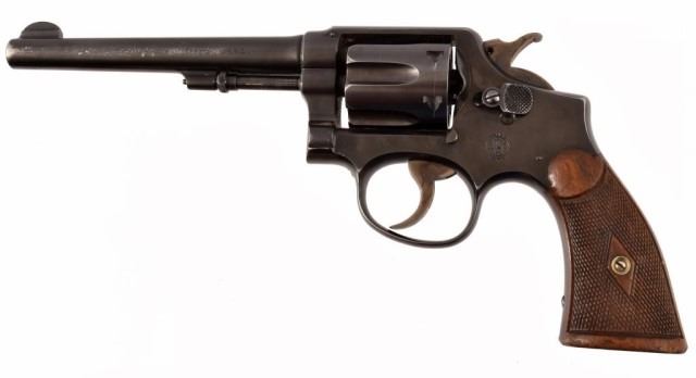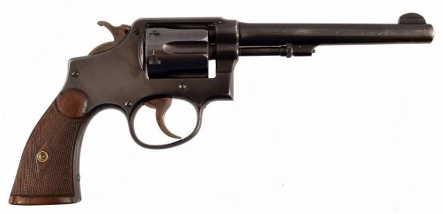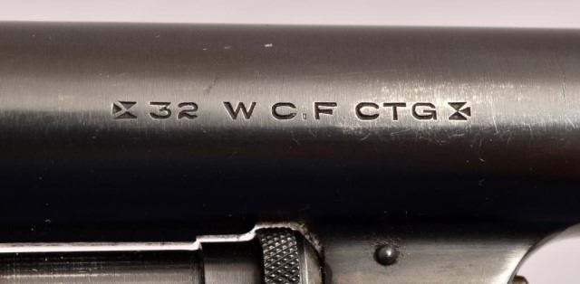 * .32-20 WCF, 6" barrel, checkered wood grips. Serial #102483