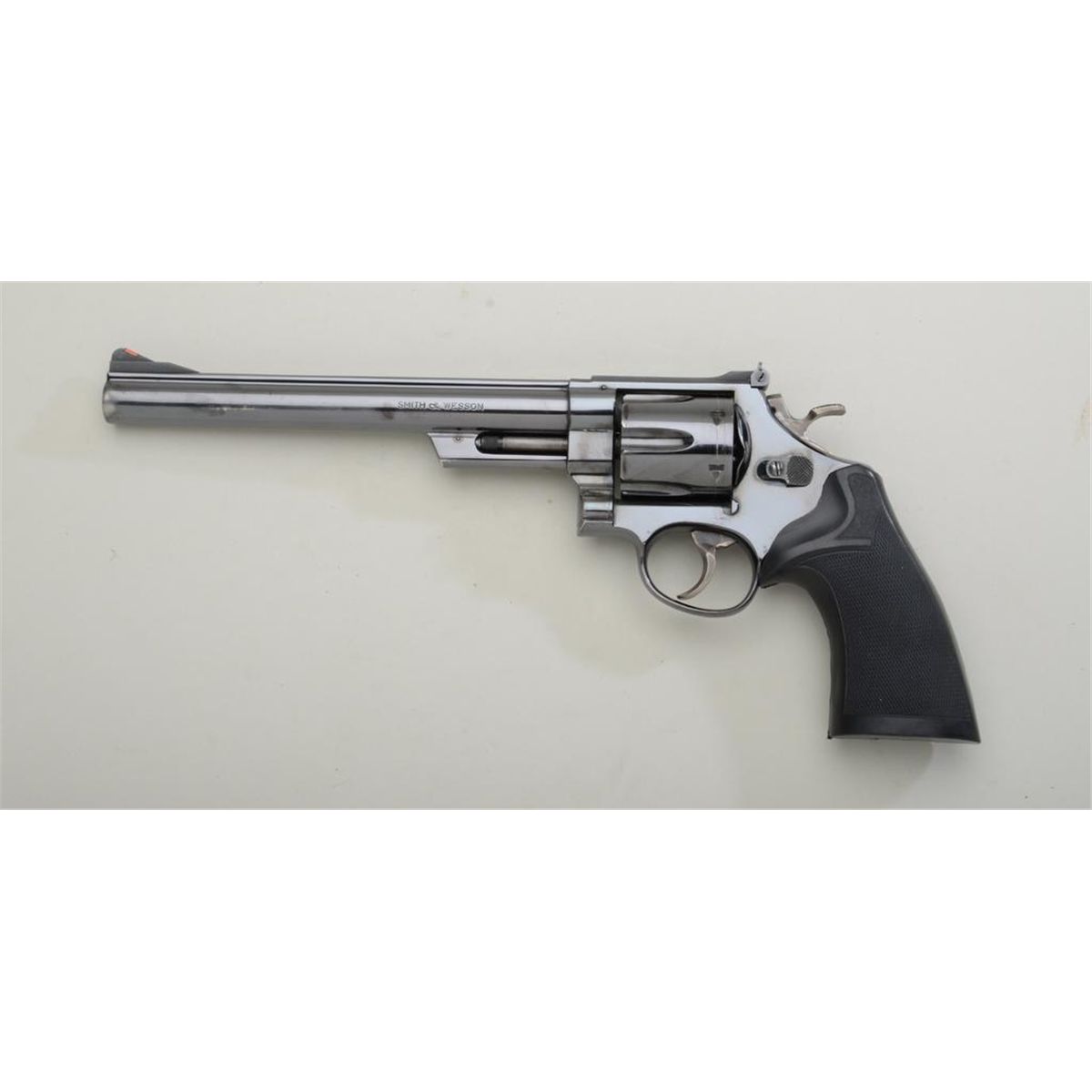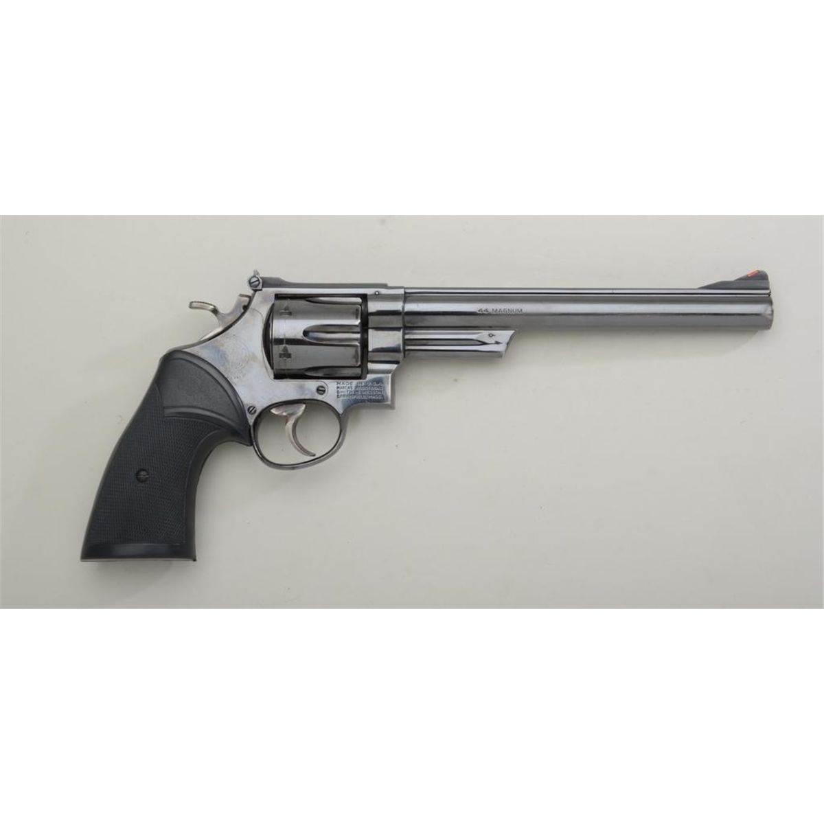 Smith & Wesson Model 29-2 DA revolver, .44 Mag. cal., 8-3/8” barrel, blue finish, checkered Pachmayr hard rubber grips, target hammer and trigger, #S228508. This gun is in overall fine to excellent condition showingapprox. 96% original finish with high point and muzzle wear, fine bore, crisp action, sharp markings, fine grips. Est.: $350-$700.