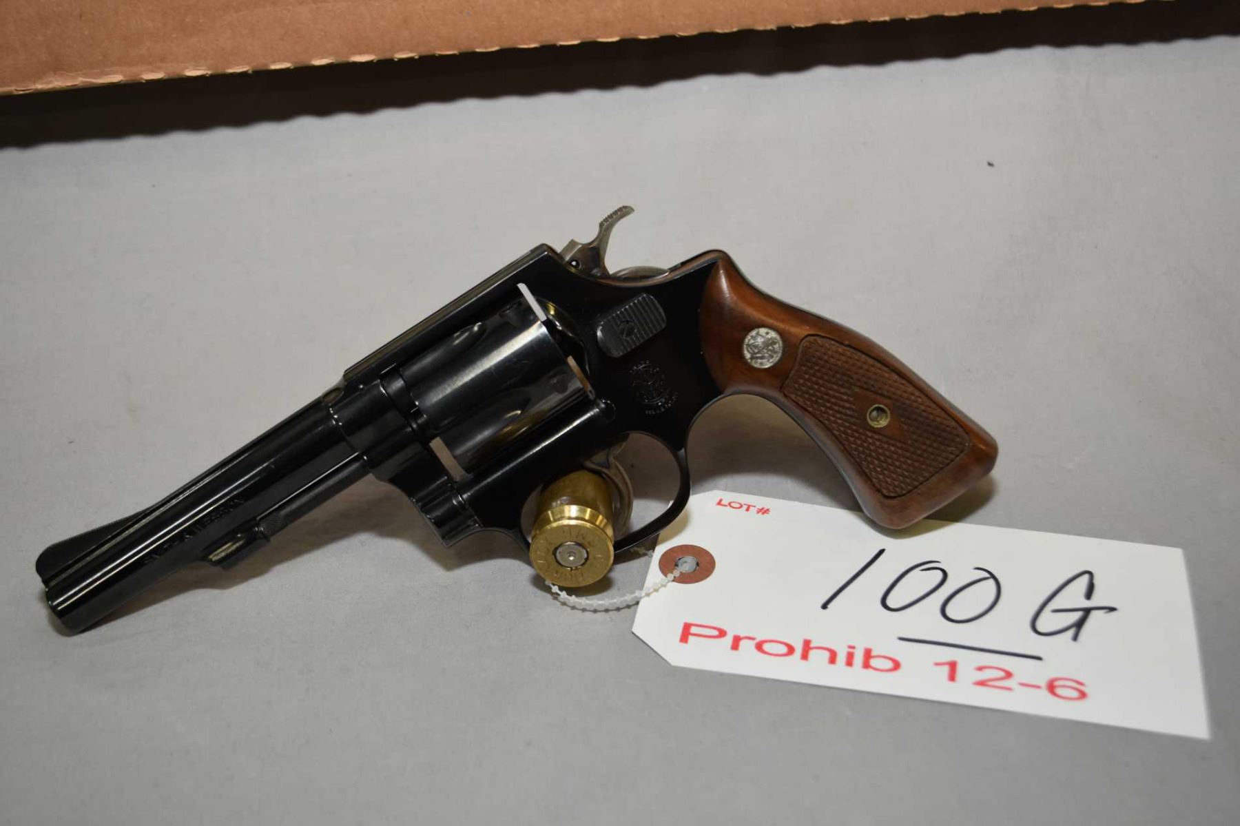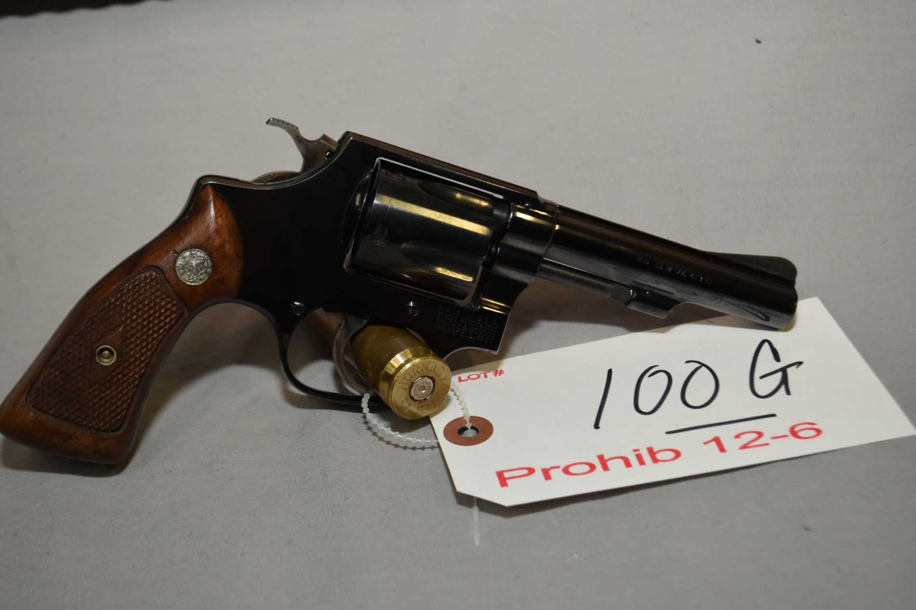 Smith & Wesson Model 33 - 1 .38 S & W Cal 5 Shot Revolver w/ 102 mm bbl [ appears excellent, few slight marks, case colored trigger & hammer, back strap stamped BCN, checkered Smith & Wesson insignia walnut grips] Ser # 95894 Prohib 12 - 6 Cert # 9934135 FRT # 24812 - 1 EXPECT DELAYS IN TRANSFER