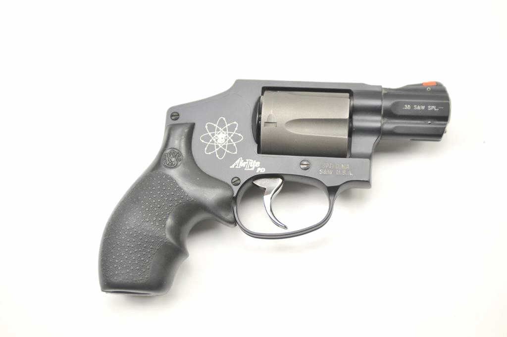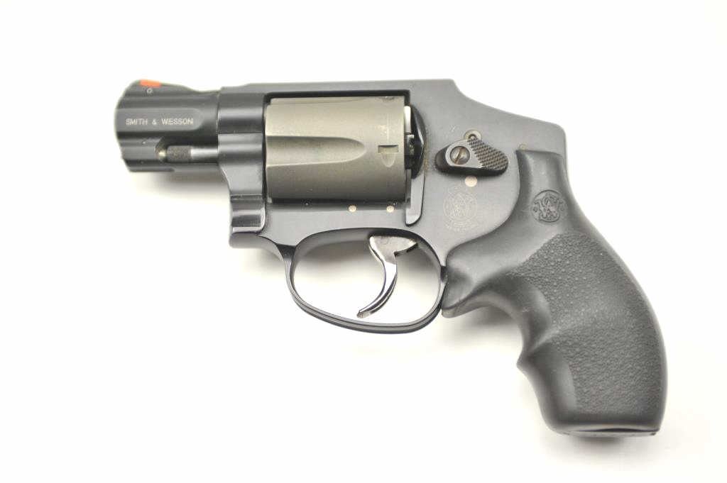 Smith & Wesson Model 342-1 Air Lite Ti DA Hammerless revolver, .38 Special caliber, Serial #CFK6453. The pistol is in nearly excellent overall condition with a 2 1/8” barrel. The pistol retains approximately93-95% of the matte blue finish with a matte grey titanium cylinder. The checkered rubber combat grips are very good, showing little use. The bore is good, action crisp and markings are sharp on this light weighttitanium framed revolver. The lot includes the factory box. Est.: $350-$700. (Modern/PPT).