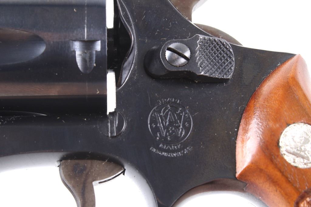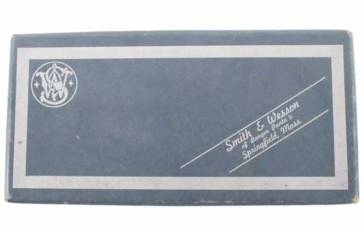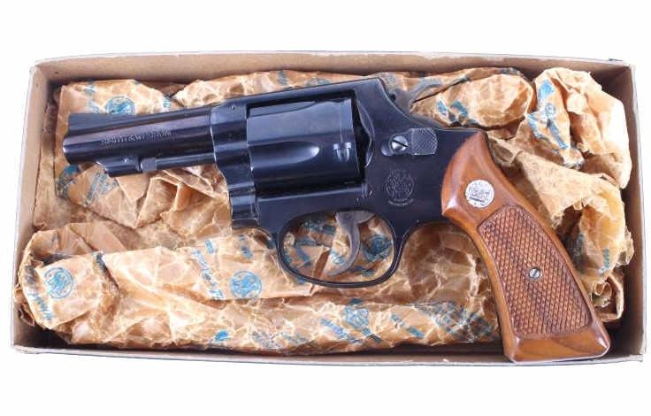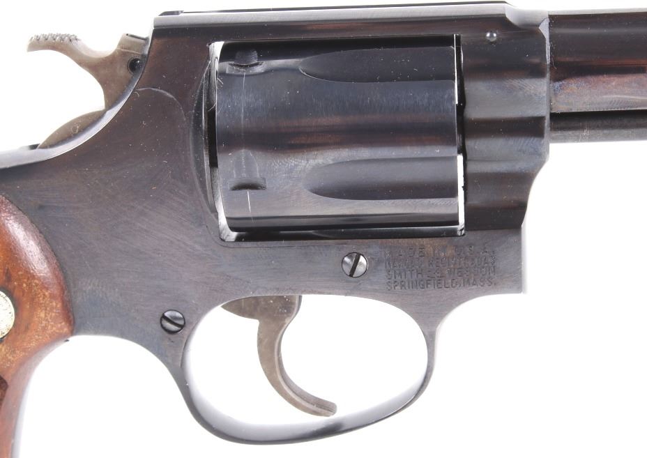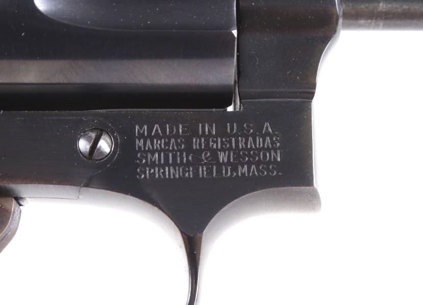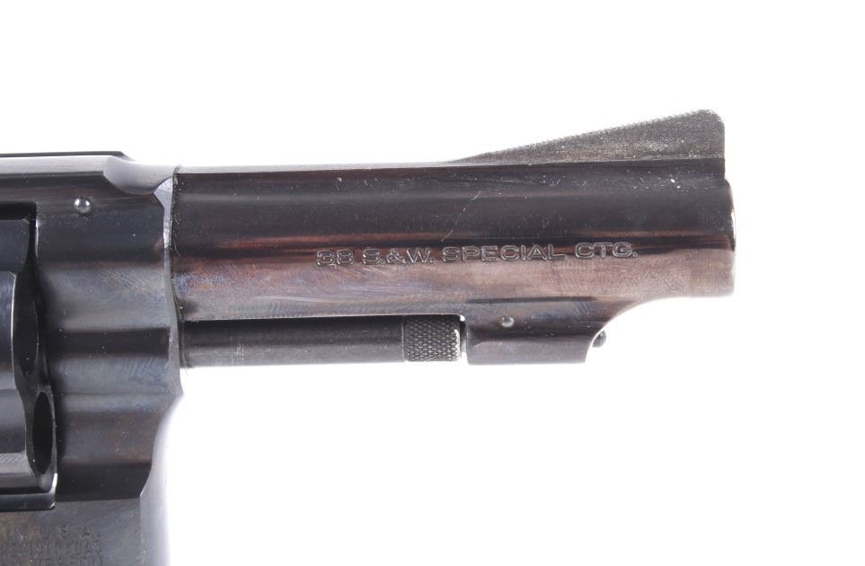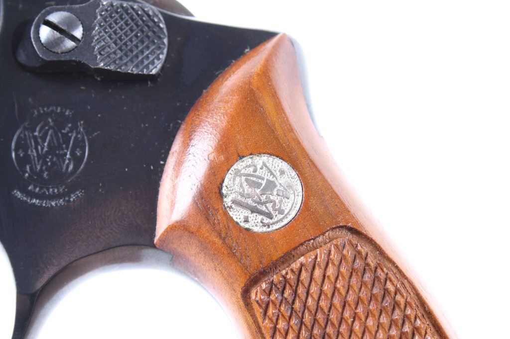 Offered in this lot is a Smith & Wesson Model 36 double action five shot .38 S&W Special caliber revolver. This stunning revolver is in near mint condition and appears to be un-shot. The revolver utilizes a 3” barrel chambered in .38 S&W Special. The five shot blue’d cylinder shows good condition with exception to a drag line. The left of the barrel is stamped “Smith & Wesson” while the right is marked “38 S&W SPECIAL CTG.” The frame on the right is additionally stamped “Made in the U.S.A. Marcas Registradas Smith & Wesson Springfield, Mass.” The revolver incorporates gorgeous checkered walnut grips with silver S&W medallions. The revolver shows the original factory blue in excellent condition and comes with matching serial numbered box with packaging. The firearm has a manufacture date of 1955-1956. Serial Number: 615066. This firearm qualifies as a Curio & Relic, and requires FFL Transfer or NICS Background Check.