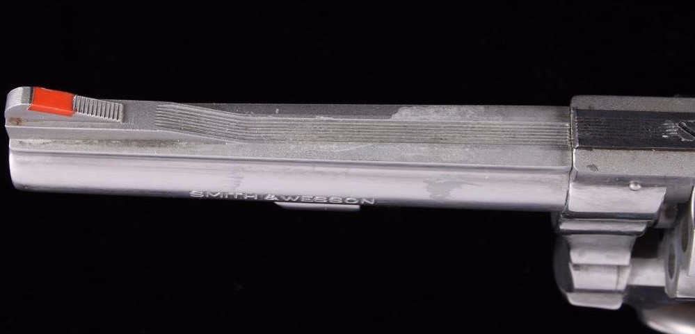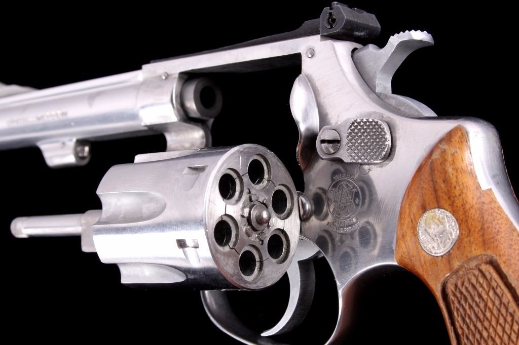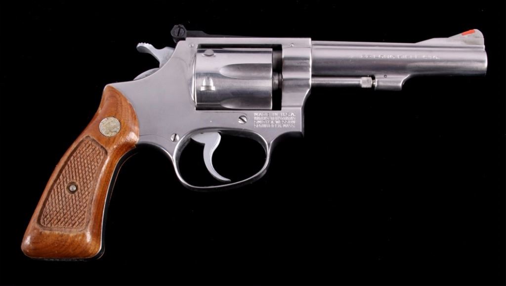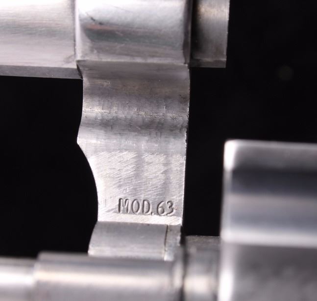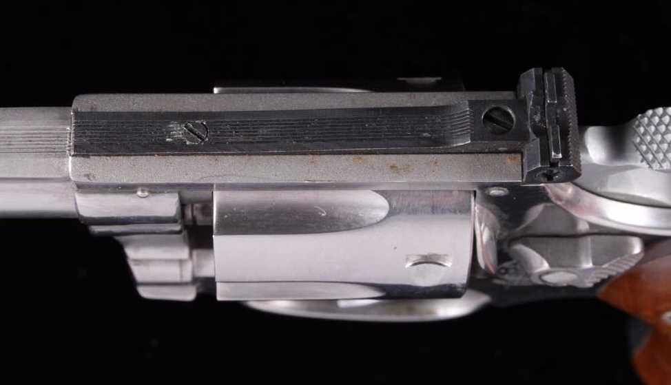 This is a Smith & Wesson Springfield, MASS.  Model 63 .22 long rifle CTG. caliber double  action six shot revolver. The revolver is in  a wonderful stainless steel finish with wood  grips in very good condition with only slight handling wear. Many consider this to be one  of the best "big little gun's" ever created  and an excellent carry or trail gun. The  pistol has a serial number of M148466.
