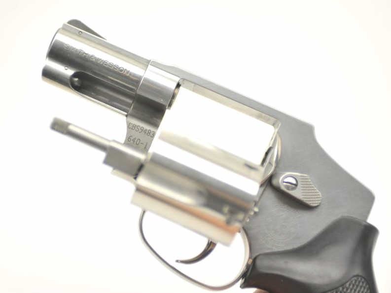 Smith & Wesson Model 640-1 DA Hammerless revolver, .357 Magnum caliber, Serial #CBS9483. The pistol is in nearly excellent overall condition with a 2 1/8” barrel. The pistol retains approximately 98-99% of thestainless steel finish. The checkered rubber combat grips are very good, showing little use. The bore is good, action crisp and markings are sharp. The lot includes the factory plastic box with matching end label. Est.: $350-$700. (Modern/PPT).