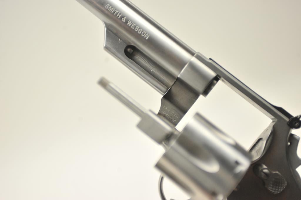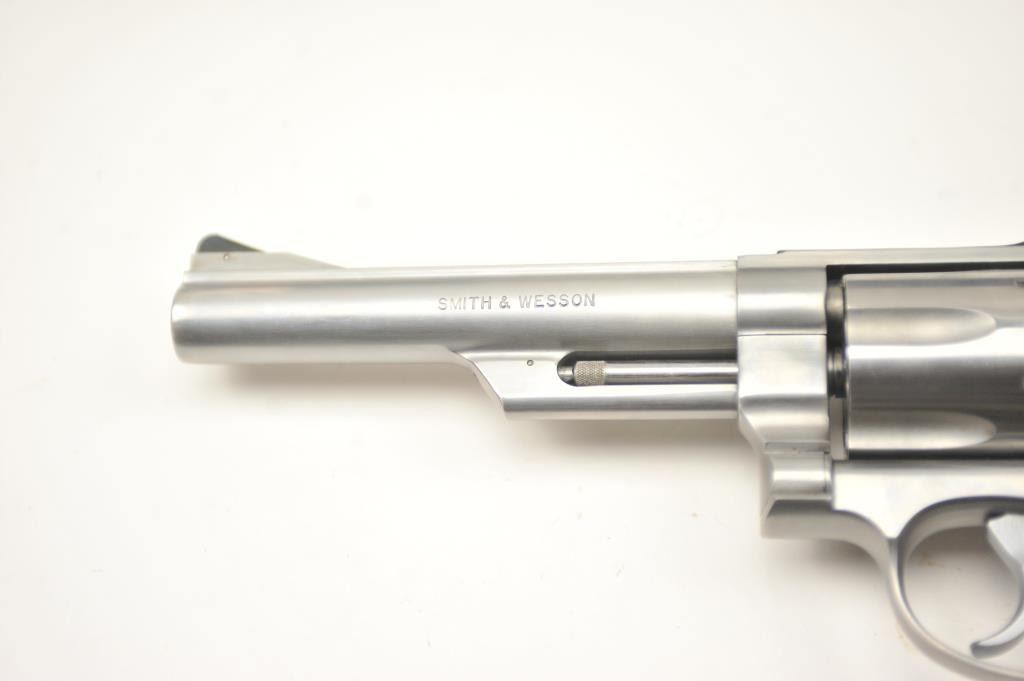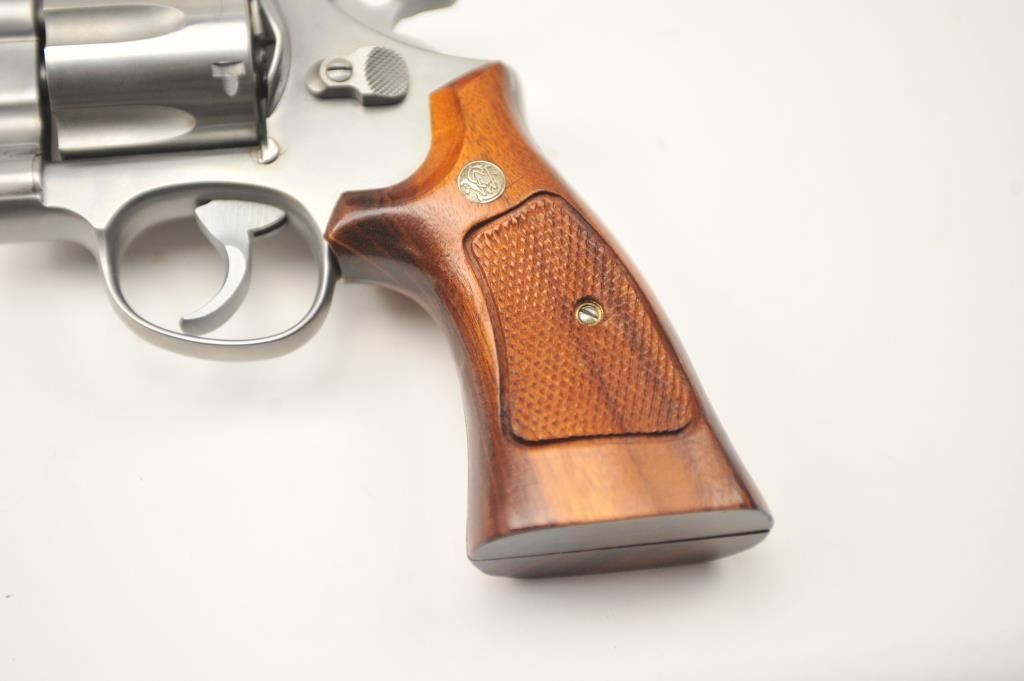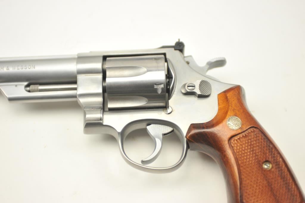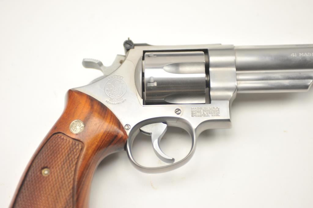 Smith & Wesson Model 657 Double Action Stainless Steel revolver in .41 Mag caliber with a 6” barrel, S/N AV87040 in box showing special order code 8130 with target stocks and target trigger. Near fine used conditionshowing some firing darkening and residue that will clean. Scarce.; (Modern/PPT) Est.: $600-$1200