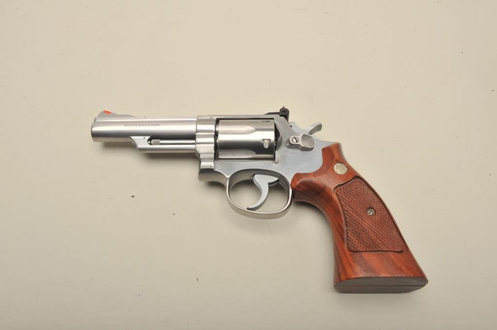 4” barrel, stainless, checkered wood medallion combat grips, S/N 50K4328, in overall near new condition with factory two-piece blue box and instructions (end label of box numbered to this gun). (Modern/PPT). Est.: $500-$1,000.