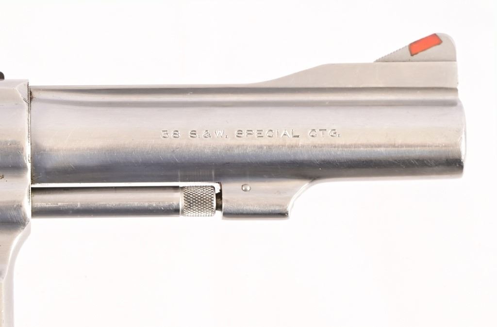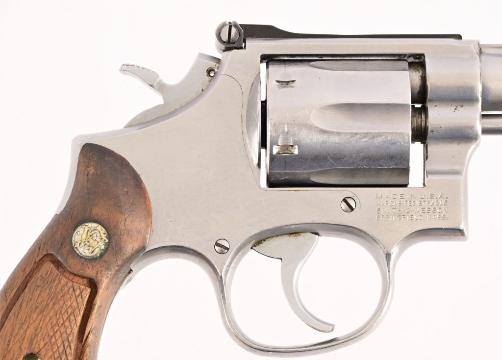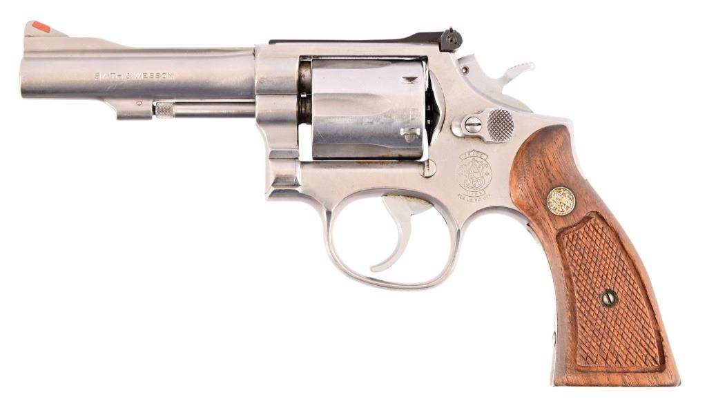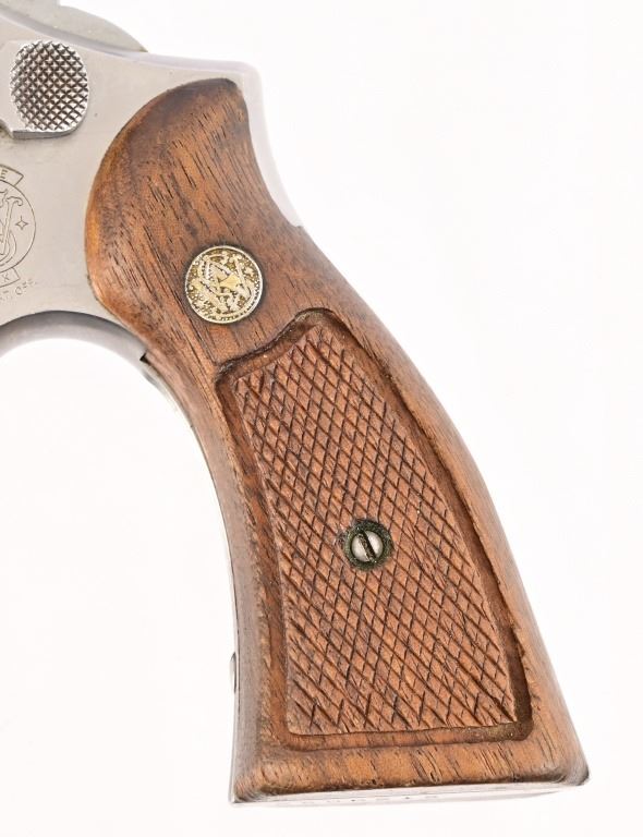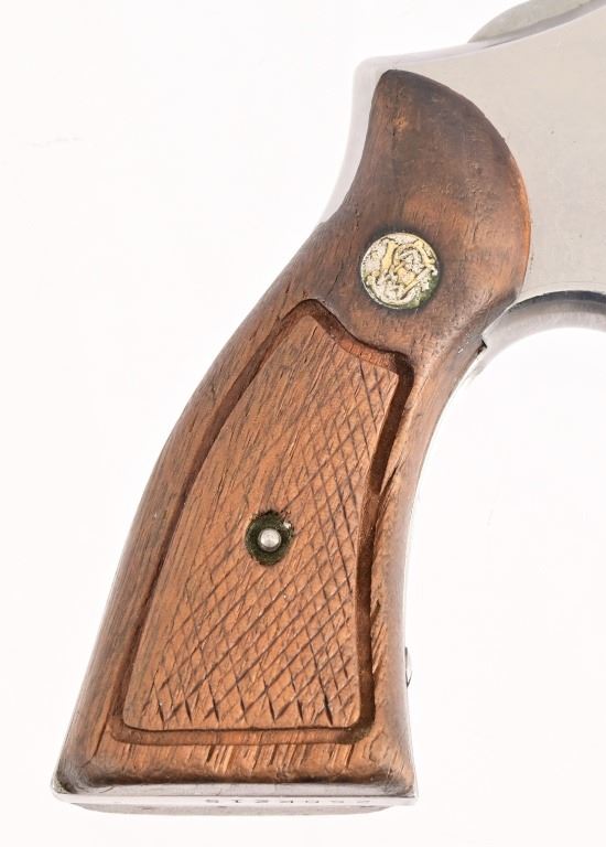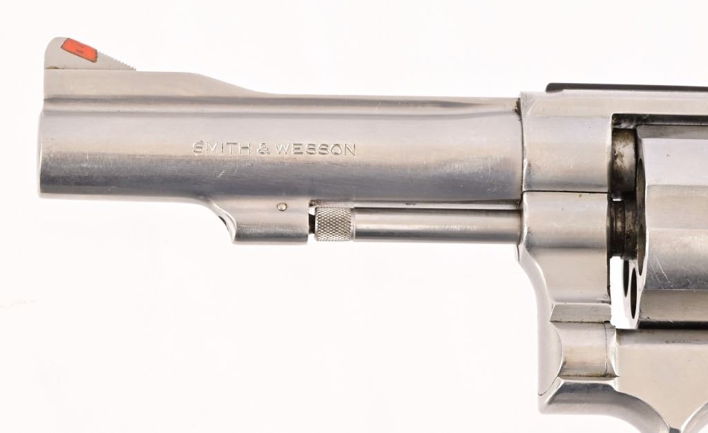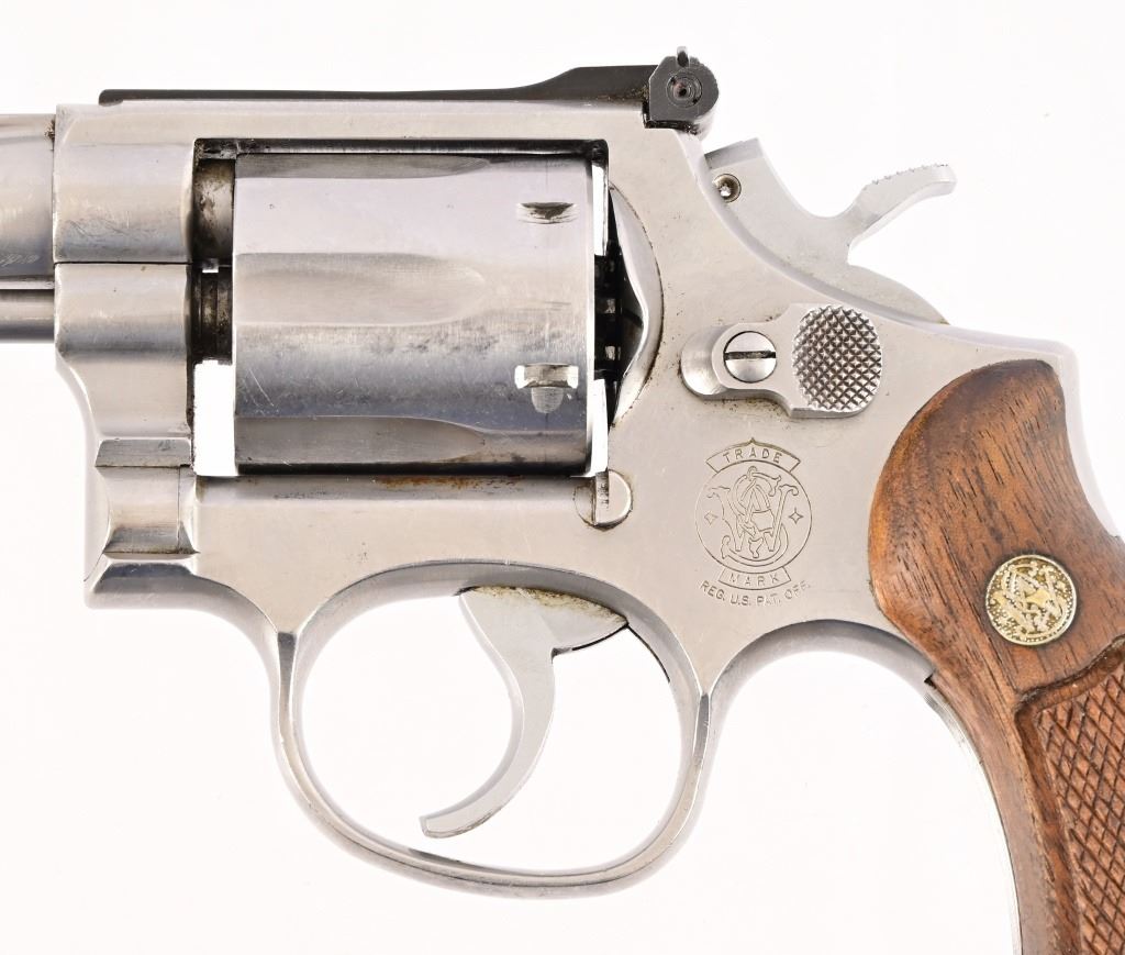 SN 260K215. 4" barrel, decent bore. Stainless, tight action, pretty good condition. S&W wood grips. Modern.