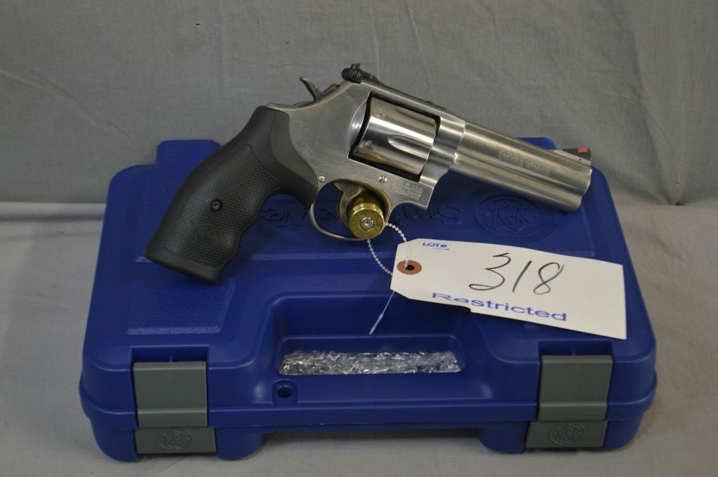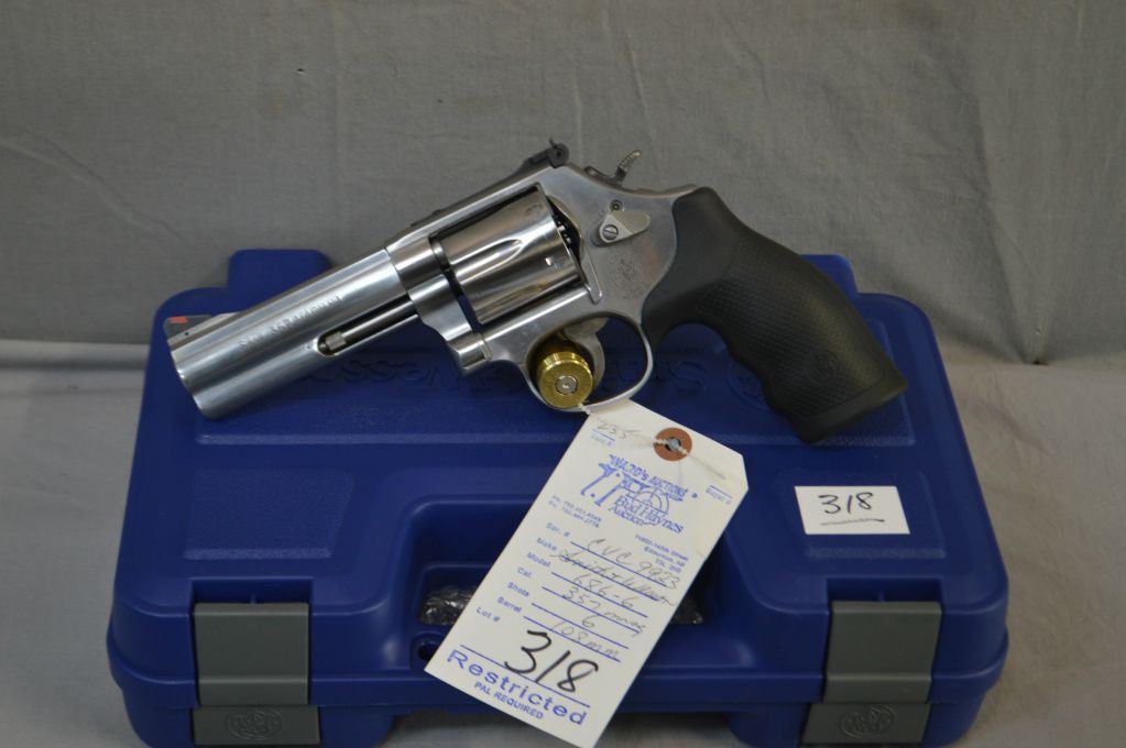 Smith & Wesson Model 686 - 6 .357 Mag Cal 6 Shot Revolver w/ 108 mm bbl [ appears excellent, test fired, in original box w/ booklet, etc., stainless finish, case colored trigger & hammer, adjustable rear sight, Smith & Wesson black rubber grips ] Ser # CVC 9923 Restricted Handgun Cert # 184852