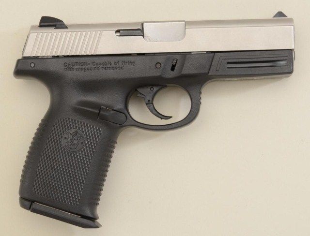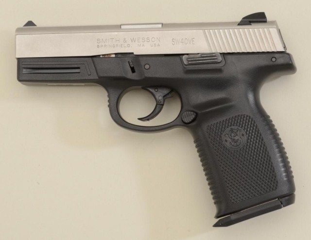 Smith & Wesson Model SW40VE DA semi-auto pistol, .40 S&W cal., 4” barrel, stainless barrel and slide with polymer frame, #RBA4601. This gun is in overall excellent condition showing little use or handling.Est.: $250-$350.