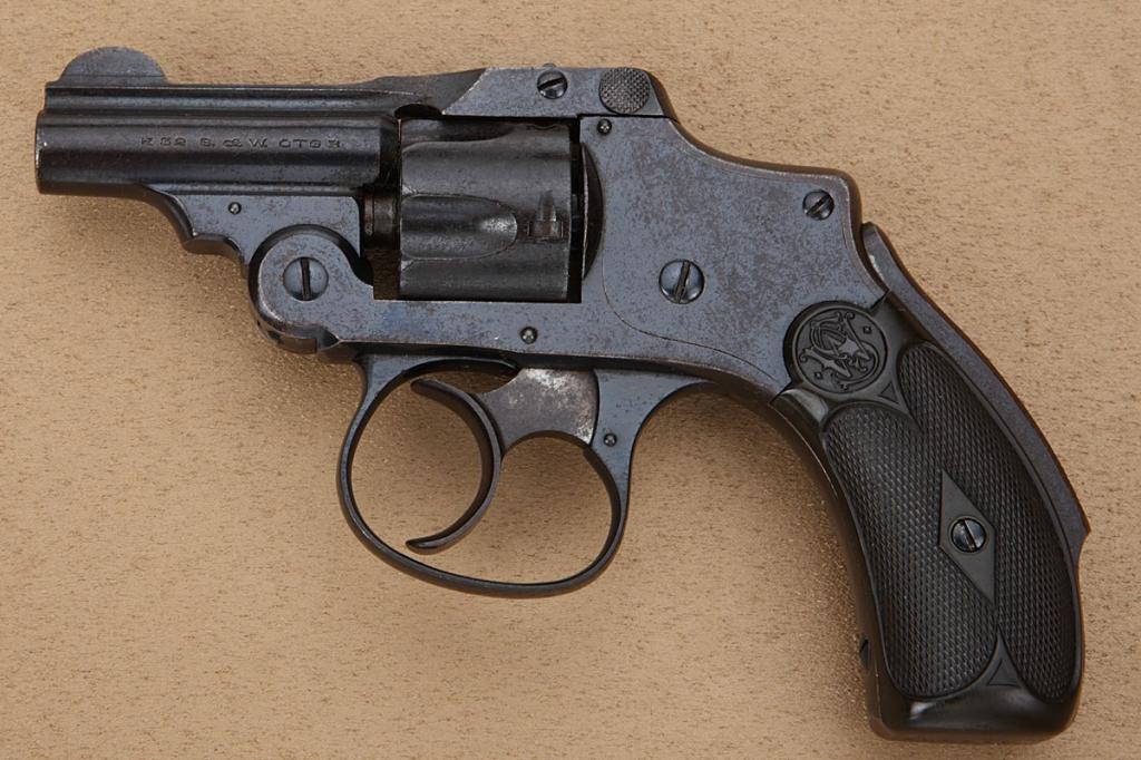 Smith & Wesson New Departure Third Model Safety Hammerless “Bicycle” variation, .32 cal., desirable 2” barrel, blue finish, checkered black hard rubber grips, #214006. This gun is in overall fine condition showing approx. 70% original blue finish with balance gone to a plum color patina, fine bore, crisp action, sharp markings, fine grips. Accompanied by a factory letter indicating shipment on December 17, 1917 toShapleigh Hardware Co., St. Louis, MO, confirming all features. Est.: $300-$600.