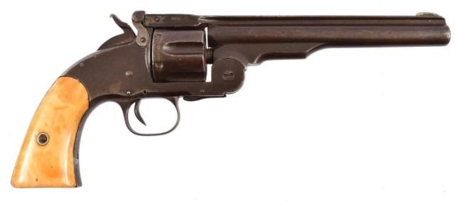 * Smith & Wesson Schofield 2nd model. Ivory grips, .45 cal. Serial no. 4031