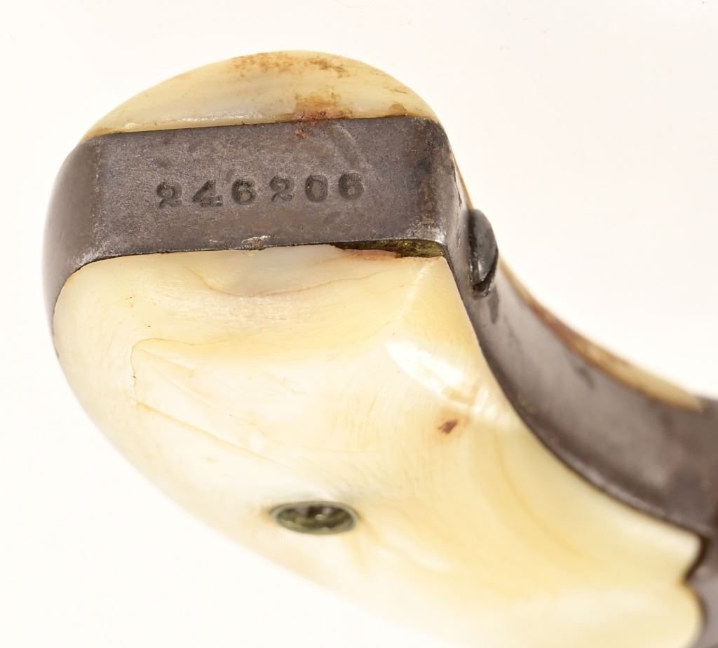 S/N 246206. Mother-of-Pearl Grips, 3.5" barrel, bore is fair. Action works but is stiff. Modern.