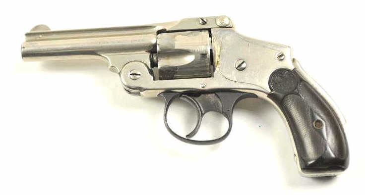 Smith & Wesson Top Break Lemon squeezer DA revolver, .38 S&W caliber, Serial #200664. The pistol is in very good to nearly fine overall condition with a 3 ¼” barrel. The pistol retains the majority of the nickelfinish with wear at the muzzle and some flaking of finish on the cylinder. The checkered hard rubber S&W marked grips are in good condition with a small chip at the base of the left panel. The bore is fair and may clean, the action functions and the markings are legible. Est.: $200-$400. (C+R/PPT).