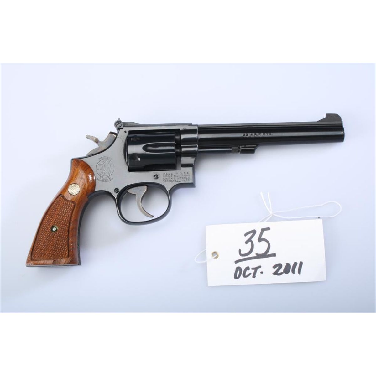 Smith & Wesson model 48-4 double action revolver, 4” barrel in .22 long rifle with extra fitted cylinder, in fine to excellent original condition, serial #82K0686. 98-99% plus original blue, slight handling, minoruse. With original box. A scarce S&W with desirable extra cylinder. Est: $450 - $900