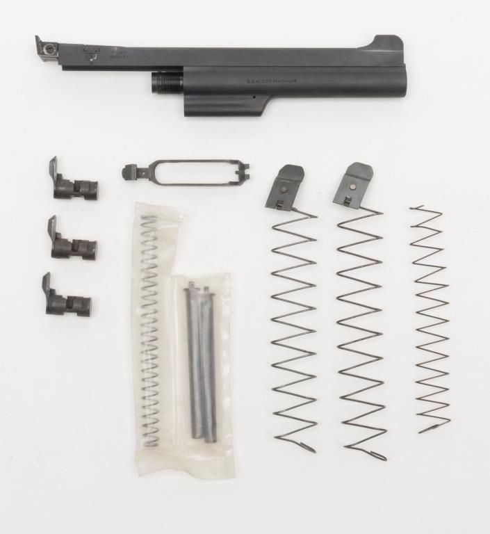 Smith & Wesson parts lot including a 6” .357 Magnum barrel assembly with ARIST CRAT CO. adjustable target sight barrel rib added; mat black finish with fine bore and misc. Mod. 59 parts. Est.: $75-$125.