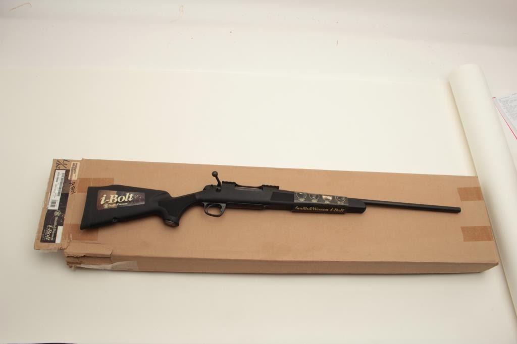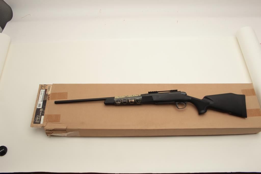 .30-06 caliber with 23” barrel, black finish, synthetic pistol grip stock, tri set trigger, weaver scope mount, S/N IBR7452, This rifle is in excellent condition showing no use and some slight handling marks. In original box. (Modern) Est.: $450-$900
