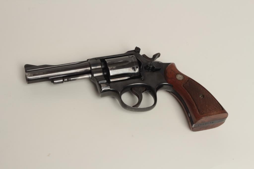 Action Revolver with 4” barrel, blue finish, checkered wood grips, S/N 1K353454 showing 80%-90% original blue with losses at the muzzle and high points along with very good grips. The action is tight, the bore is bright and the interior shows only minor use. (Modern/PPT) Est.: $300-$600