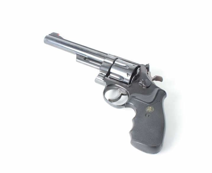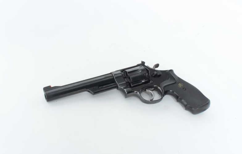 caliber, 6.5” barrel, blued finish, jeweled hammer and trigger, Pachmayr checkered hard rubber finger groove grips, S/N N338255, in overall very good condition showing the majority of its original finish, very good to fine bore, crisp action, sharp markings; stored in an old gun boot that deteriorated; with some careful cleaning, this gun should improve to near fine. (Modern/PPT). Est.: $500-$1,000.