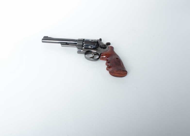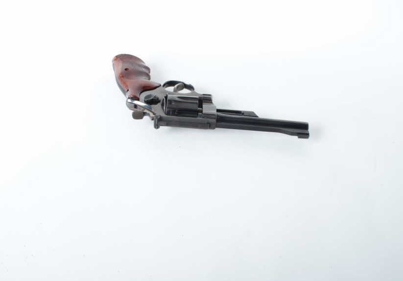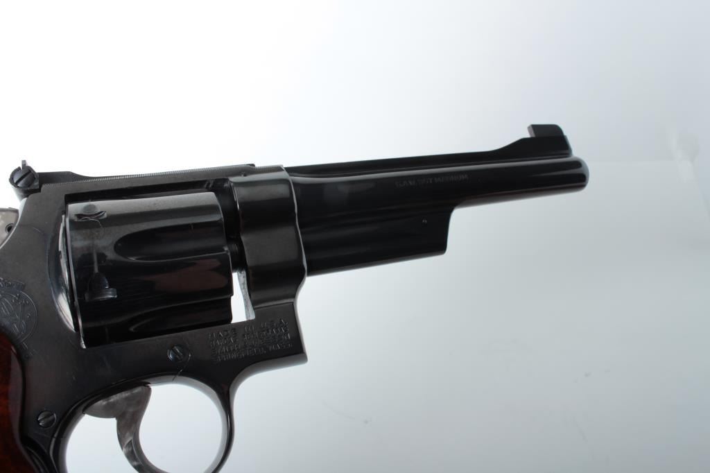 Magnum caliber, 6” barrel, blued finish, jeweled action per consignor, custom checkered deluxe wood finger groove grips, S/N N362027, in overall fine to excellent condition; fine bore, crisp action, sharp markings and excellent grips. (Modern/PPT). Est.: $500-$1,000.