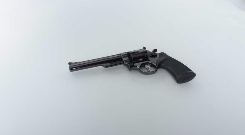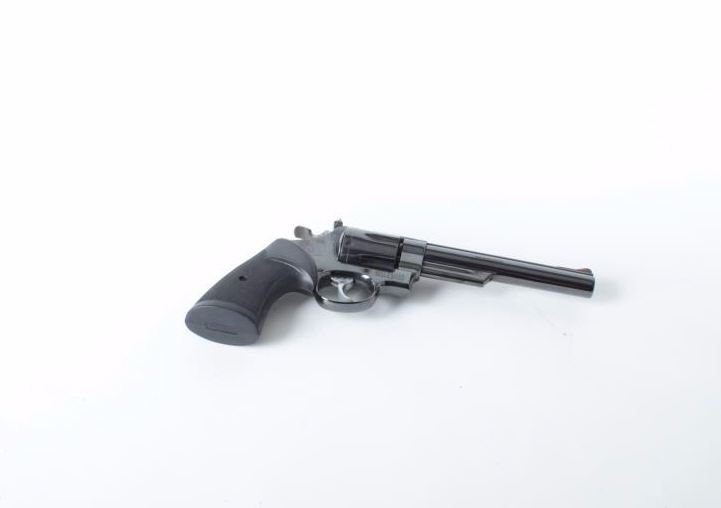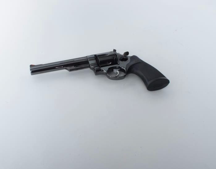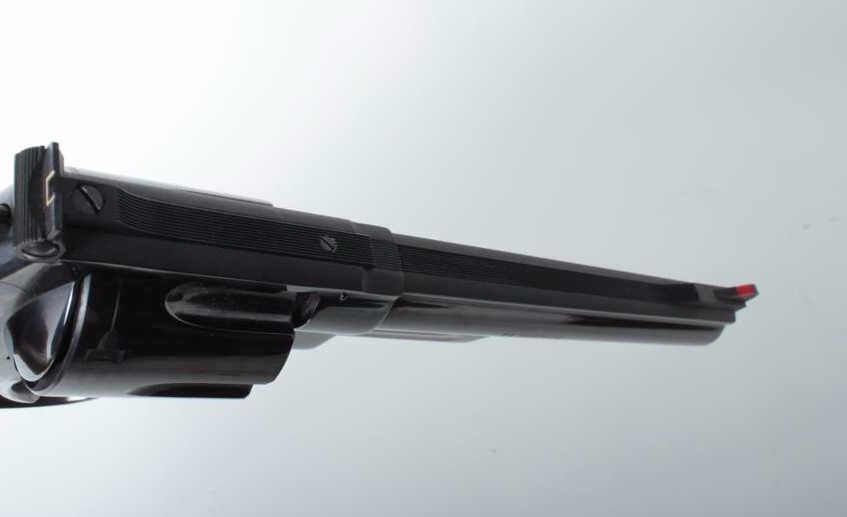 Magnum caliber, 6.5” barrel, blued finish, jeweled hammer and trigger, Pachmayr checkered hard rubber grips, S/N 72493, in overall fine to excellent condition with a fine bore, crisp action, sharp markings and fine grips. (Modern/PPT). Est.: $600-$1,200.