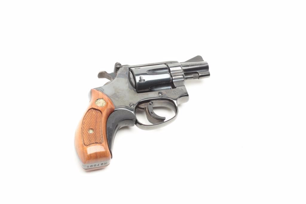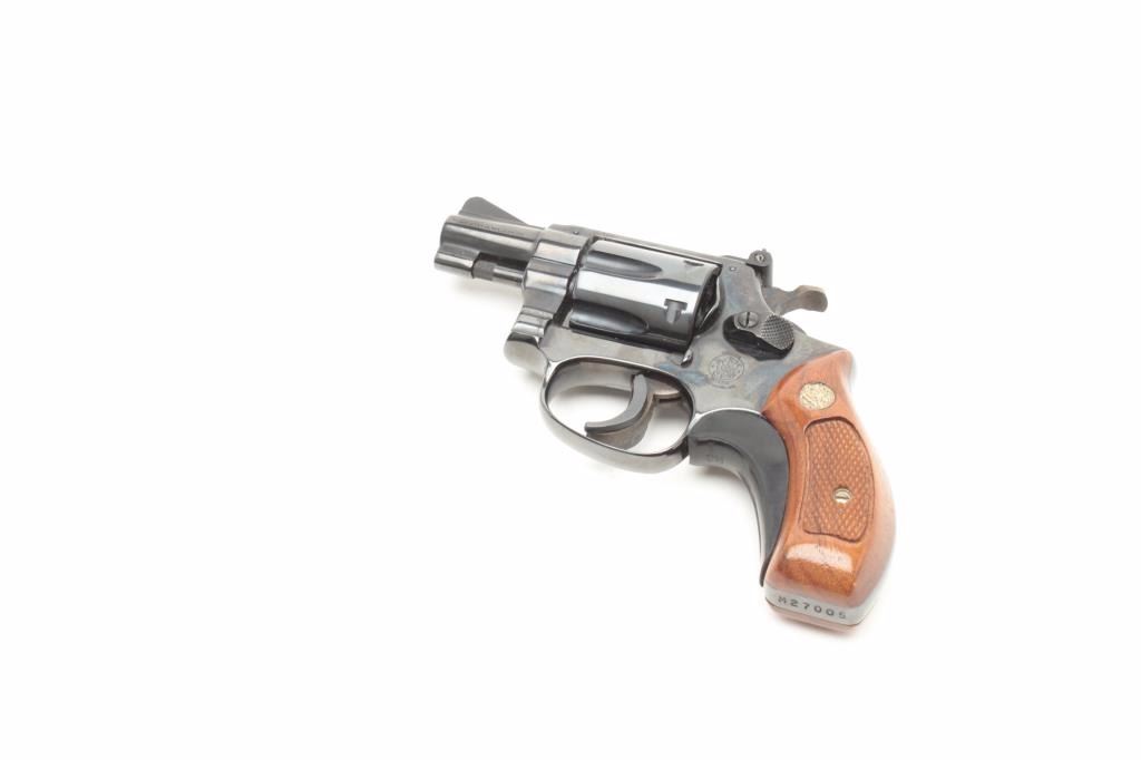 caliber, S/N M27005 showing blue finish with a 2” pinned barrel, enhanced trigger, adjustable rear sight, and pachmayr grip adapter. In very good condition with minimal signs of use. Bluing in near mint condition with no holster wear. (Modern/PPT) Est.: $350-$700