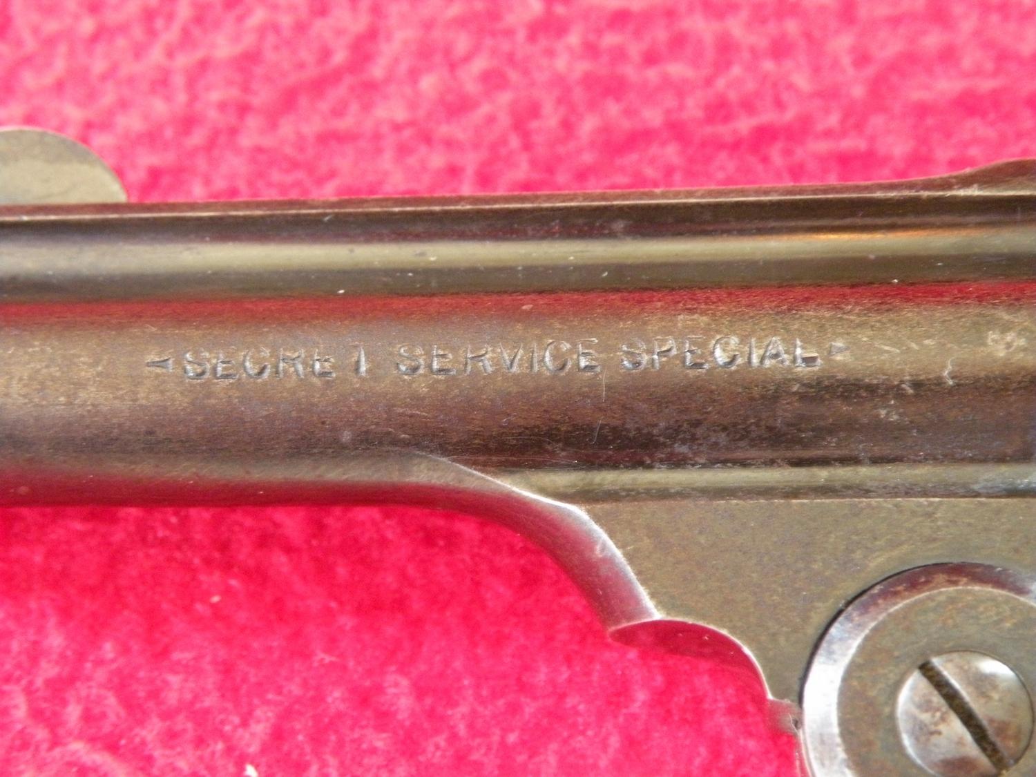4th model .32 cal, 5 shot fluted cylinder, "Secret Service Special" on barrel, added hammer safety, 3" barrel, hard rubber grips, unique pistol, SN 90507