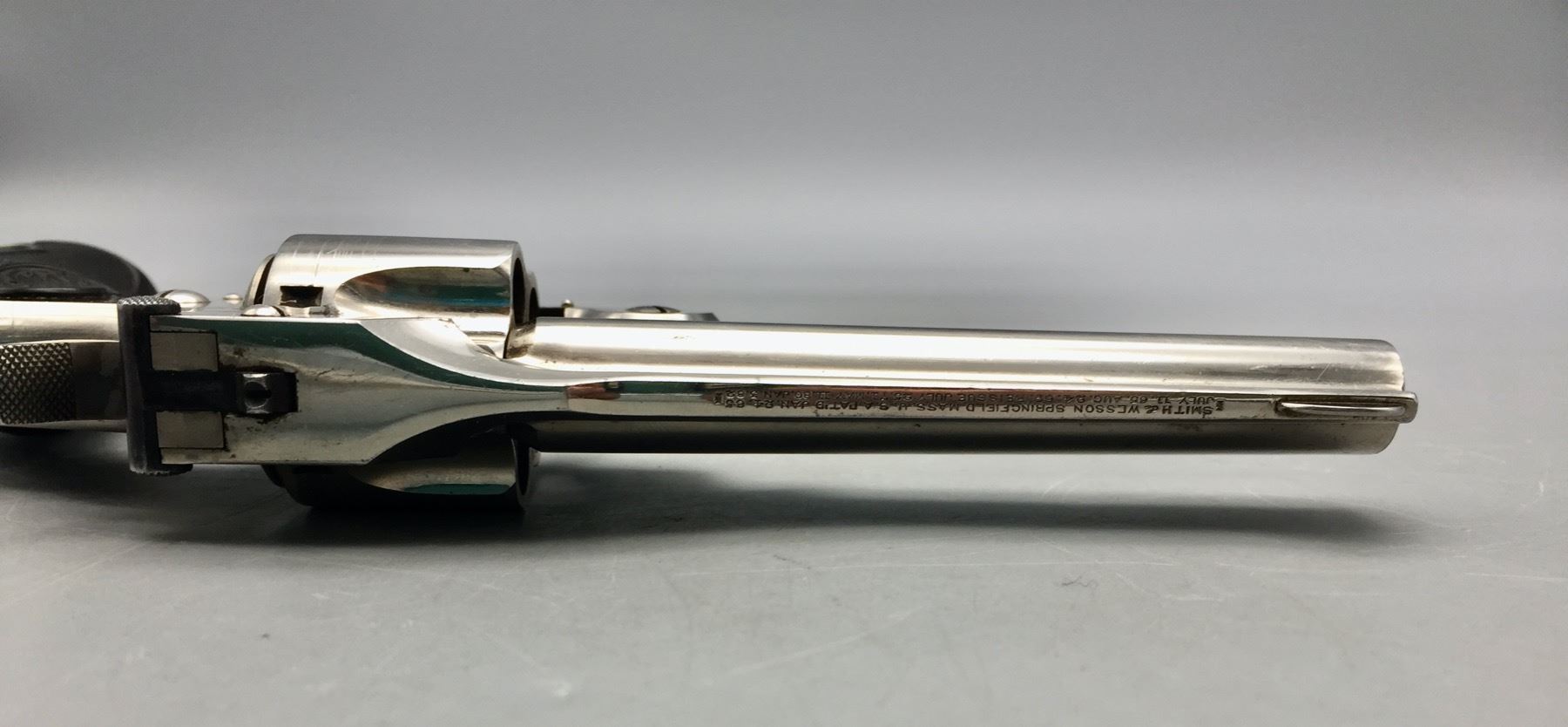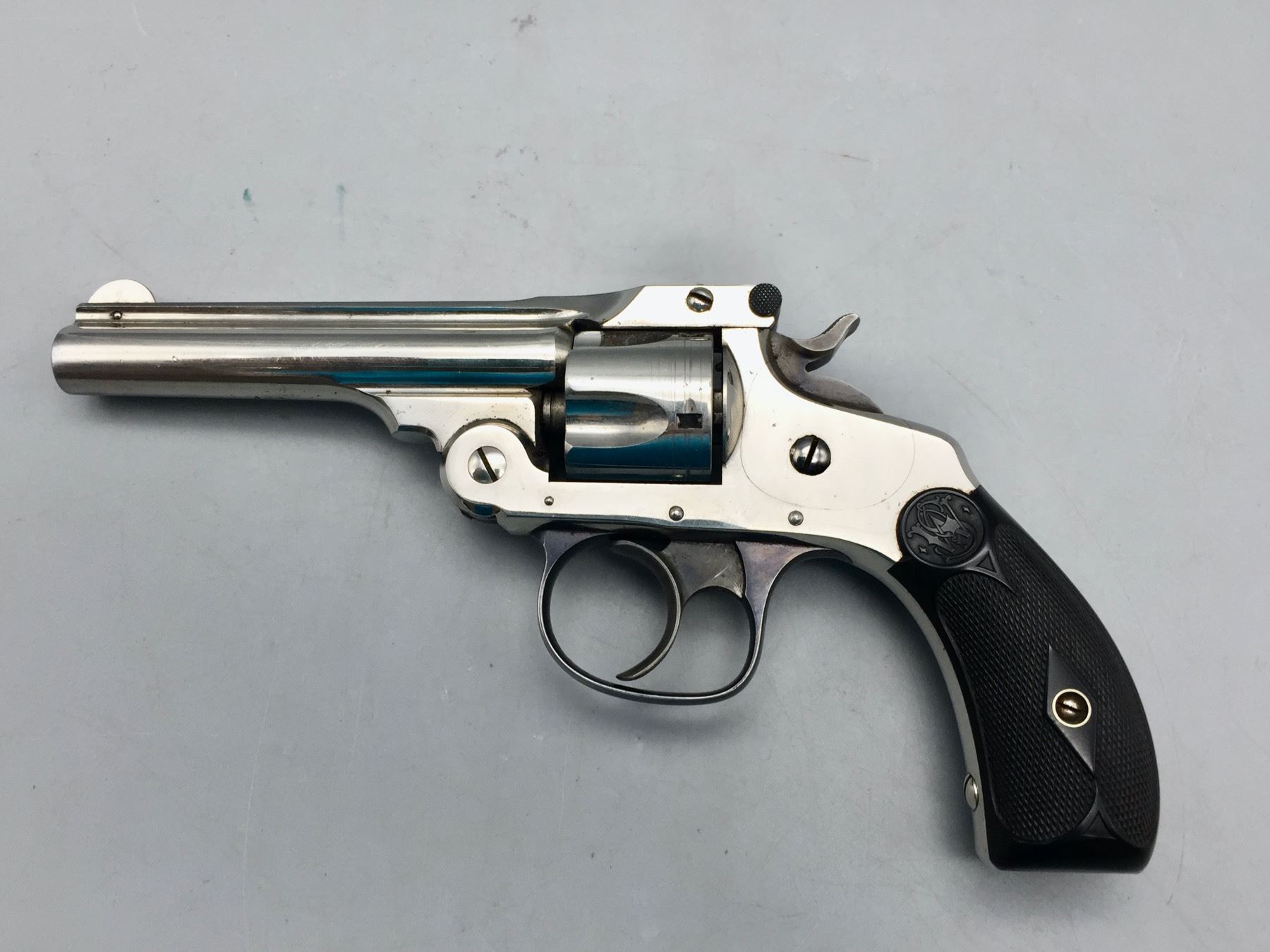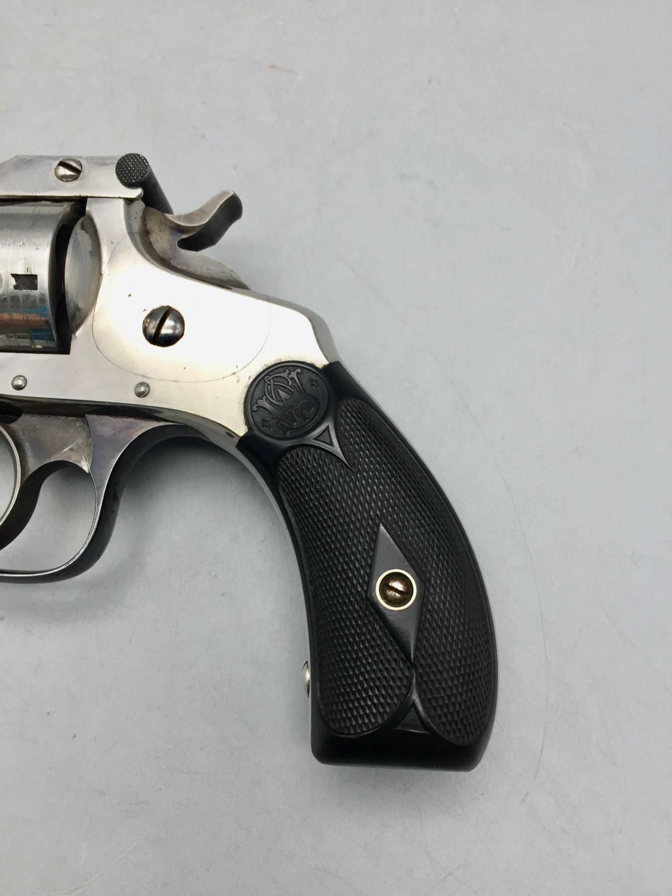 Description: For your consideration we offer for sale this Smith and Wesson .32 caliber, top break revolver with black rubber grips. This is a 4th model with nickel finish and original hard rubber grips. A very nice condition revolver for its age. Maker: Smith and Wesson. Approx. Age: Late 1880s or early 1890s. Serial No. 110724. Size: Barrel measures 3-1/2†with an overall length of 7-7/8â€. Condition: Good for its age, normal wear expected. Please look closely at the pictures - they are an important part of our description. Shipping: There will be a $15 handling / packaging fee for shipping this lot. The actual cost of postage will be added on top of that. *****This ANTIQUE firearm DOE NOT REQUIRE an FFL Transfer*****