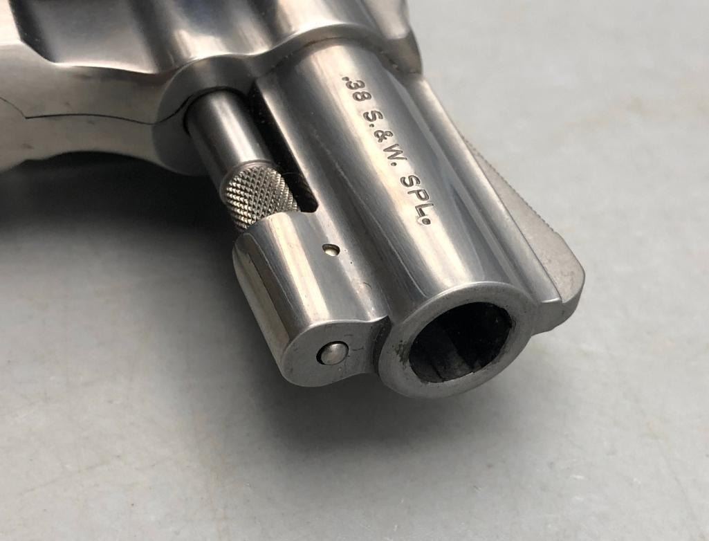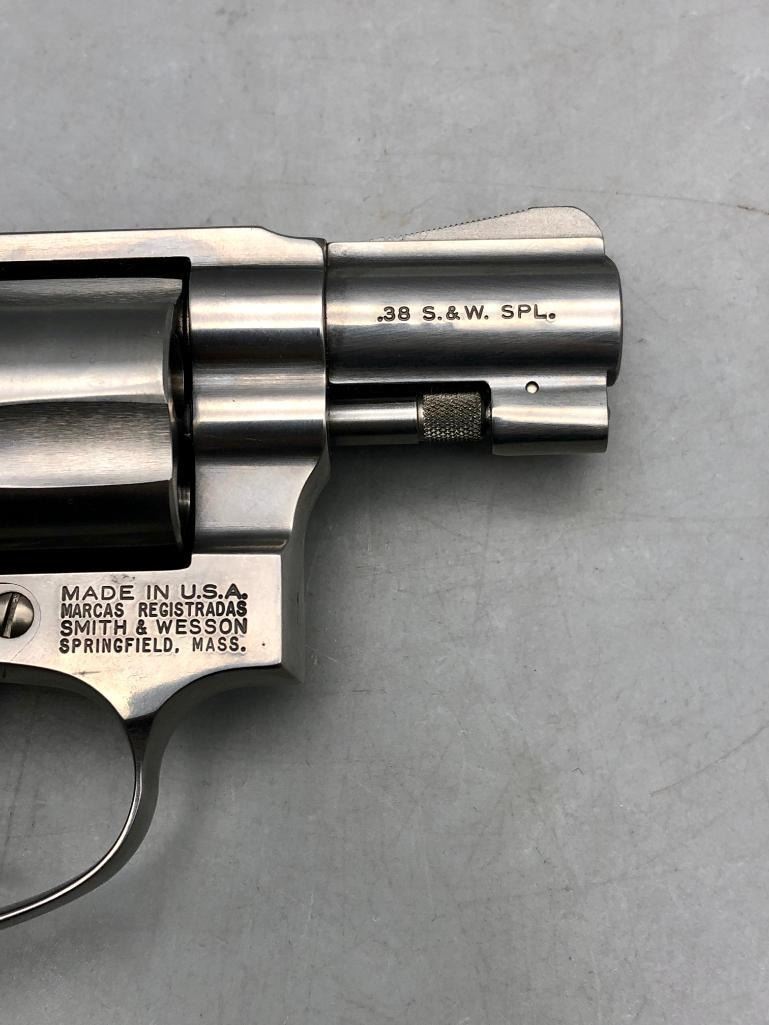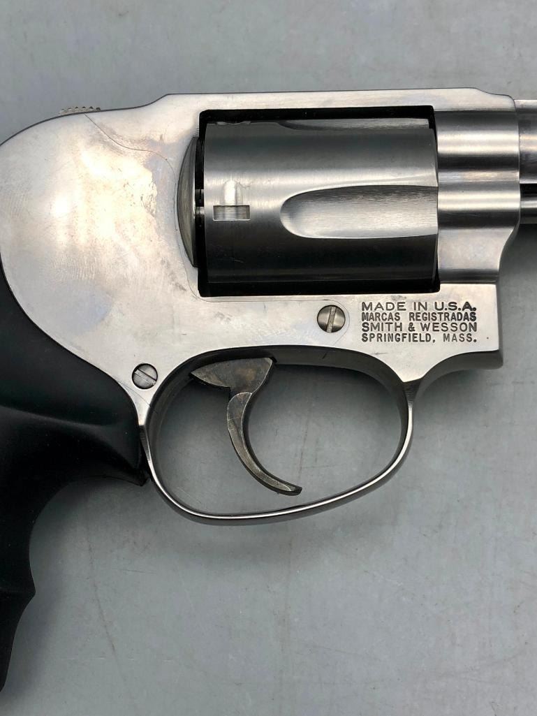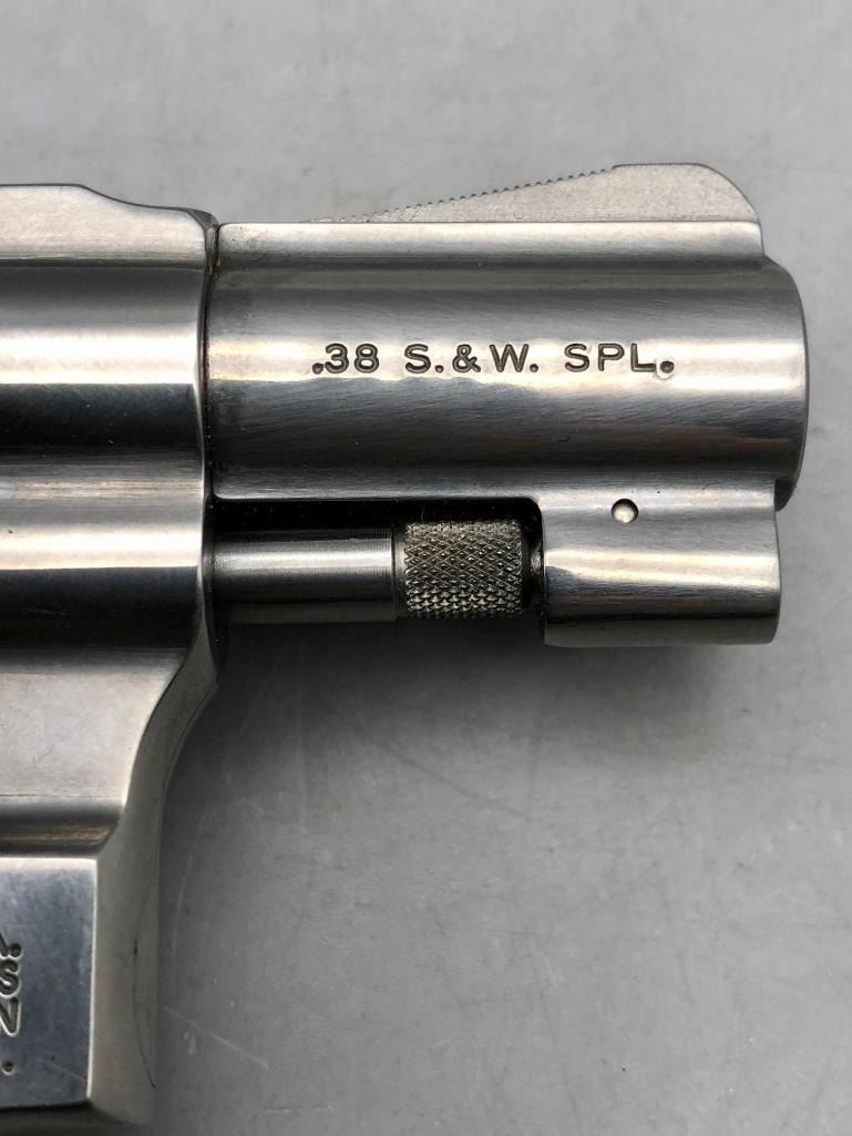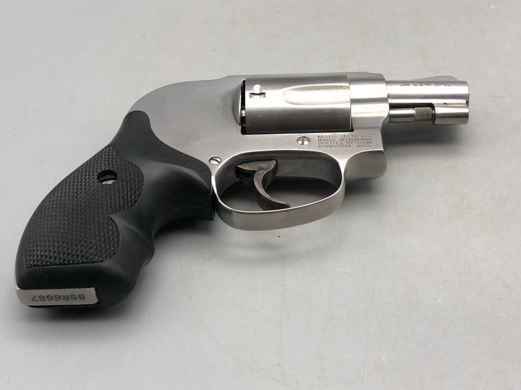 For your collection we offer the Model 642 is a five shot, double action, stainless, J frame, upgraded variation of the Model 42 Centennial Airweight. This one is in excellent condition showing very little to no use. Maker: Smith and Wesson. Serial No. BSR6687. Approx. Age: Fairly Modern. Size: Approx. 2" barrel. .38 special caliber. Condition: Very good, little to no wear expected. Please look closely at the pictures - they are an important part of our description. Shipping: There will be a $25 handling / packaging fee for shipping this lot. The actual cost of postage will be added on top of that. BUY IT NOW: If you would like to buy this item now without waiting for the auction to end (this option is only available up to 48 hours before the auction starts to close), the “Buy it Now” price is the high estimate of this lot. If you would like to end the auction early and pay the high estimate (plus applicable fees), please contact us by phone or email and reference this lot number. *****This firearm requires an FFL Transfer*****