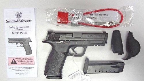Smith and Wesson M&P Police Full size thumb safety Model. Semi-Automatic pistol. 40sw. Finish: black melonite finished stainless steel slide. Action: double action only. Stock: black polymer frame with small, med and large grips. Capacity: 15+1.0# of magazines: 2. Safety: manual thumb, passive trigger, striker block. Sights: front - white dot dovetail. Rear- low profile carry. Overall length: 75". weight: 24.25oz. Features: ambidextrous slide release, reversible mag catch, no internal lock model, no magazine safety.