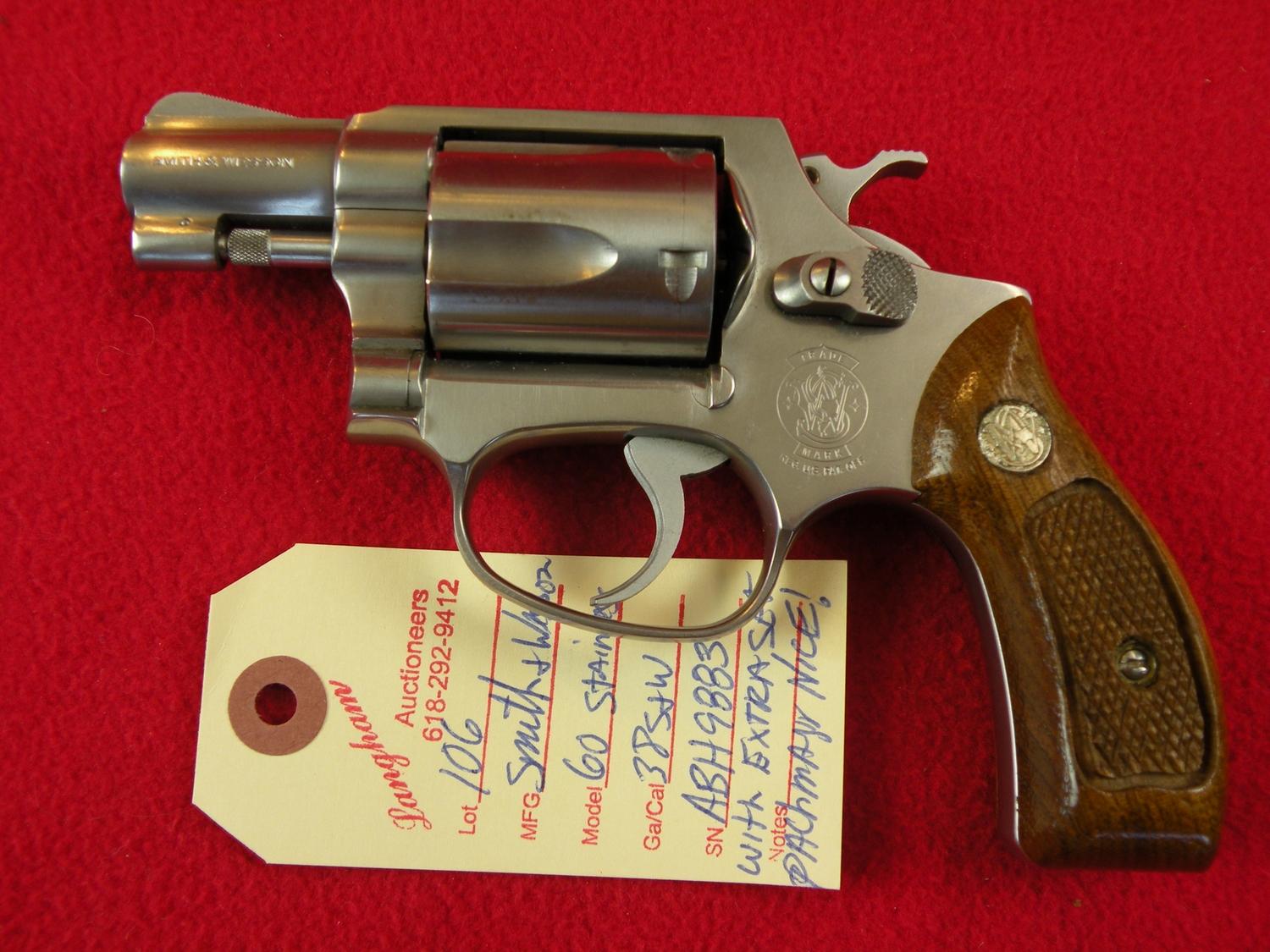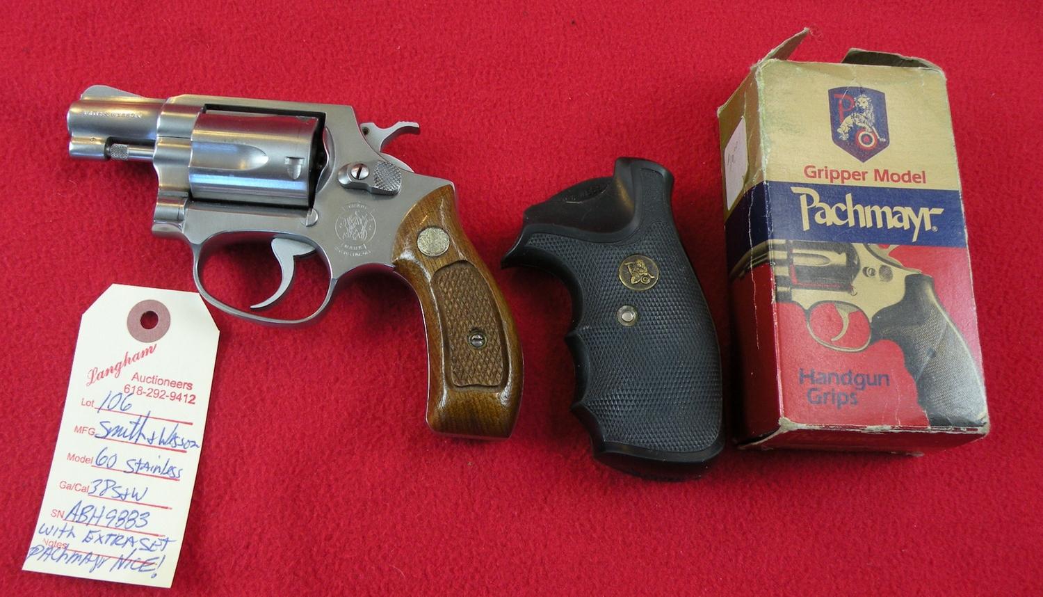 38 S&W stainless 2" barrel, very nice, with pachmayr grips, SN ABH 5883