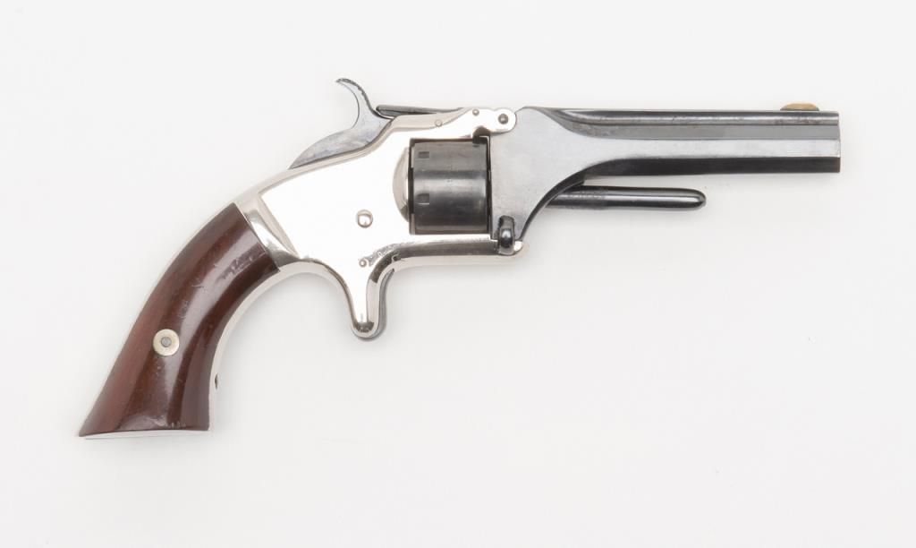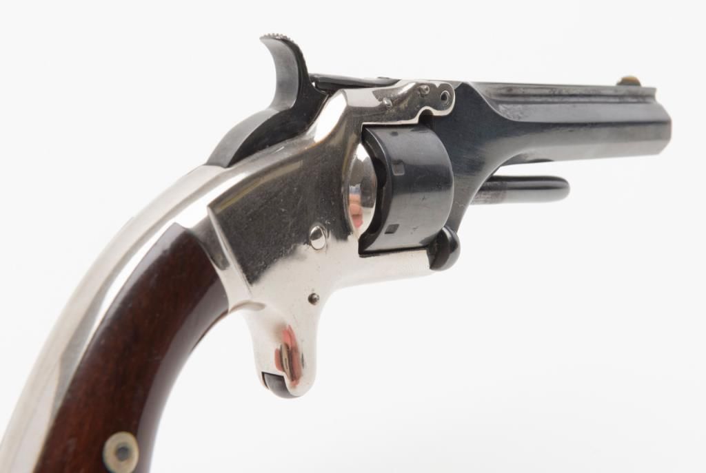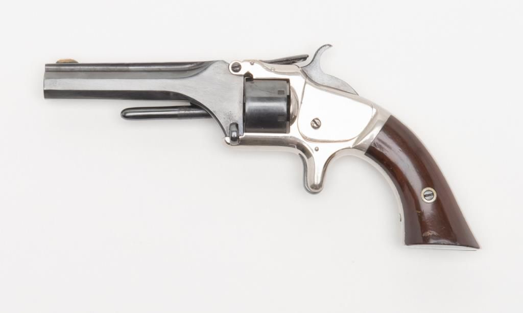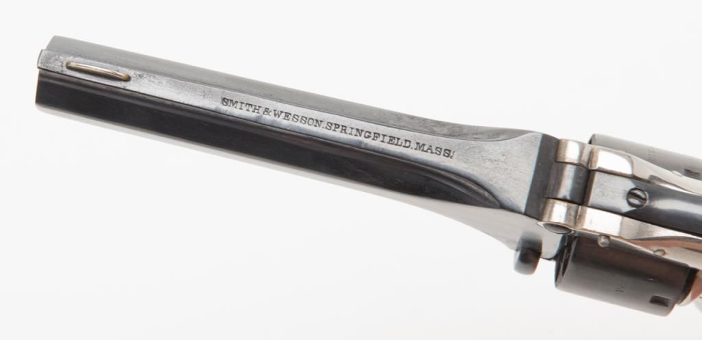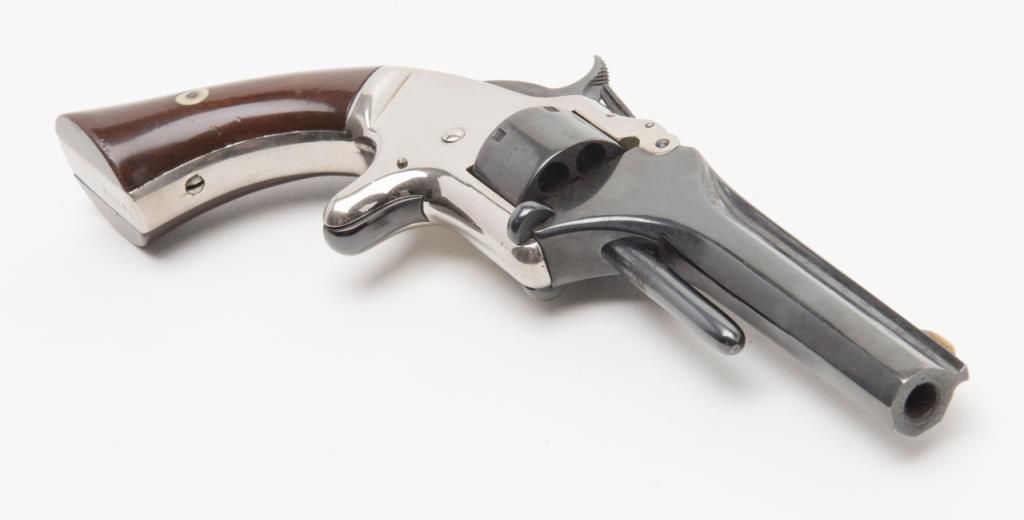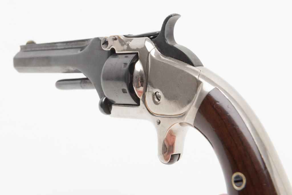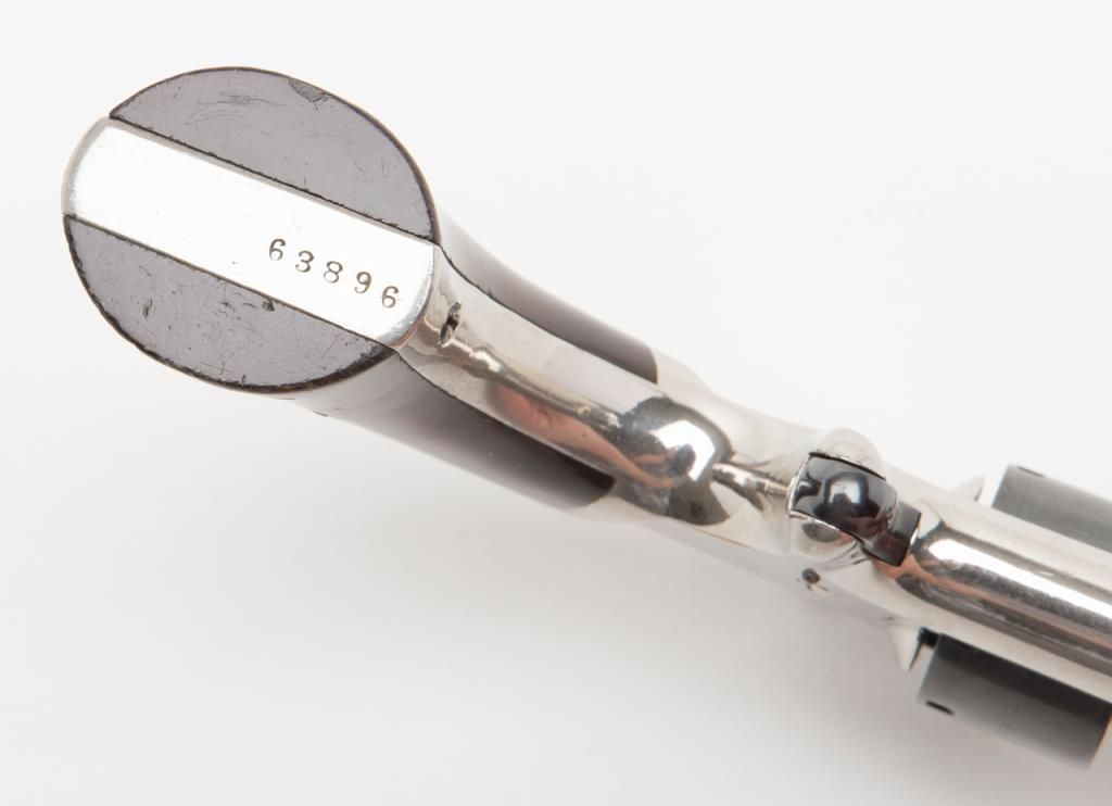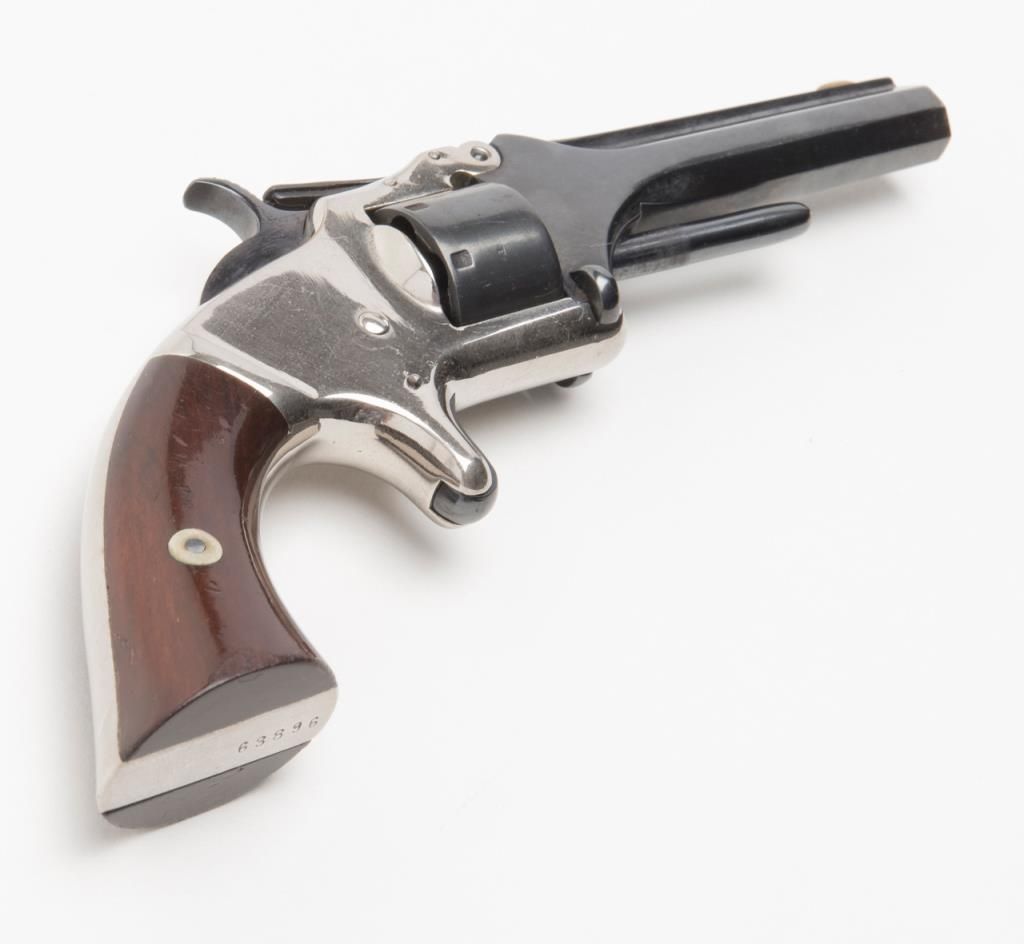 Smith and Wesson No. 1 Second Issue revolver, .32 caliber, Serial #63896. The pistol is in overall good condition with a 3 ½” barrel. The pistol retains the majority of its frosted nickel finish. The smooth, period ivory grips are in very goodcondition and look great having mellowed with age. The bore is good, action functions and Markings are legible on this nice, old Smith. (Antique). Est.: $150-$250.