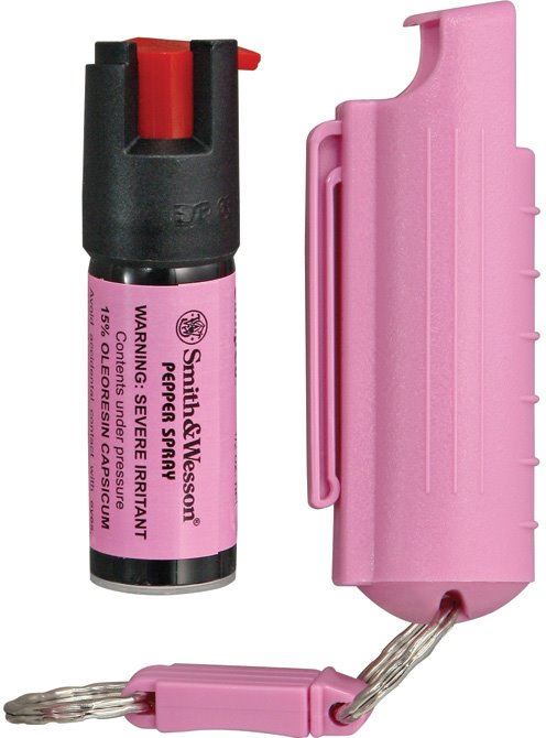 Pepper Spray ORMD - Hard Case Unit. 3 1/4" overall. Pink composition case with belt/pocket clip and quick release keychain. Contains 0.5 oz. of 15% oleoresin capsicum pepper spray. 2,000,000 heat units - bear spray formula. Sprays up to 10 feet. Can be used on multiple assailants. Immobilize assailant for up to 30 minutes. Works better than tear gas. Used and recommended by law enforcement. Made in U.S.A.
