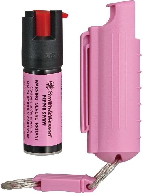 Pepper Spray ORMD - Hard Case Unit. 3 1/4" overall. Pink composition case with belt/pocket clip and quick release keychain. Contains 0.5 oz. of 15% oleoresin capsicum pepper spray. 2,000,000 heat units - bear spray formula. Sprays up to 10 feet. Can be used on multiple assailants. Immobilize assailant for up to 30 minutes. Works better than tear gas. Used and recommended by law enforcement. Made in U.S.A.