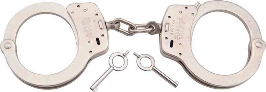 Handcuffs ,Solid nickel construction. Features double lock. Comes with two keys.