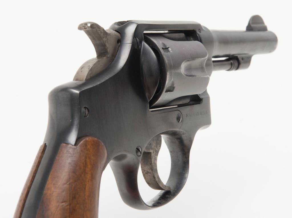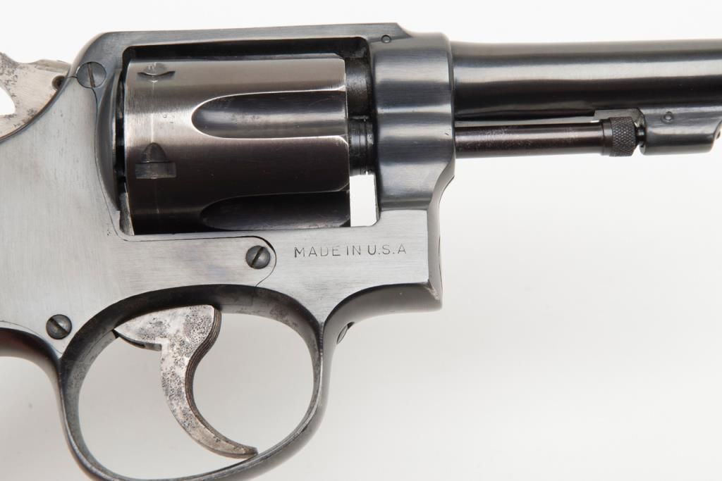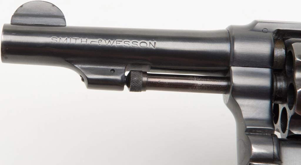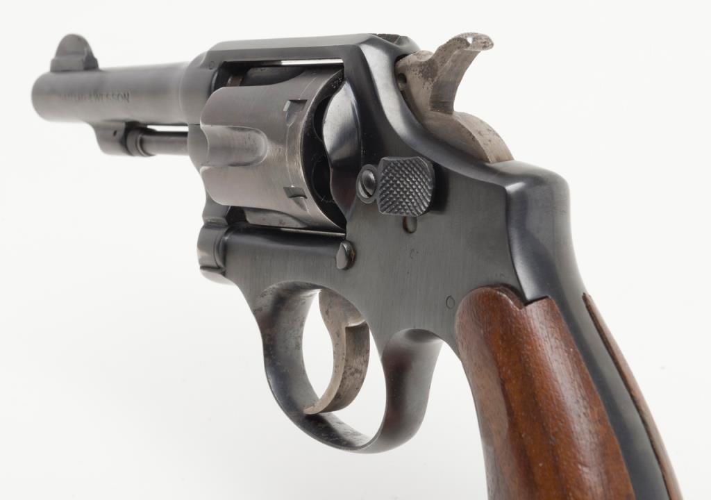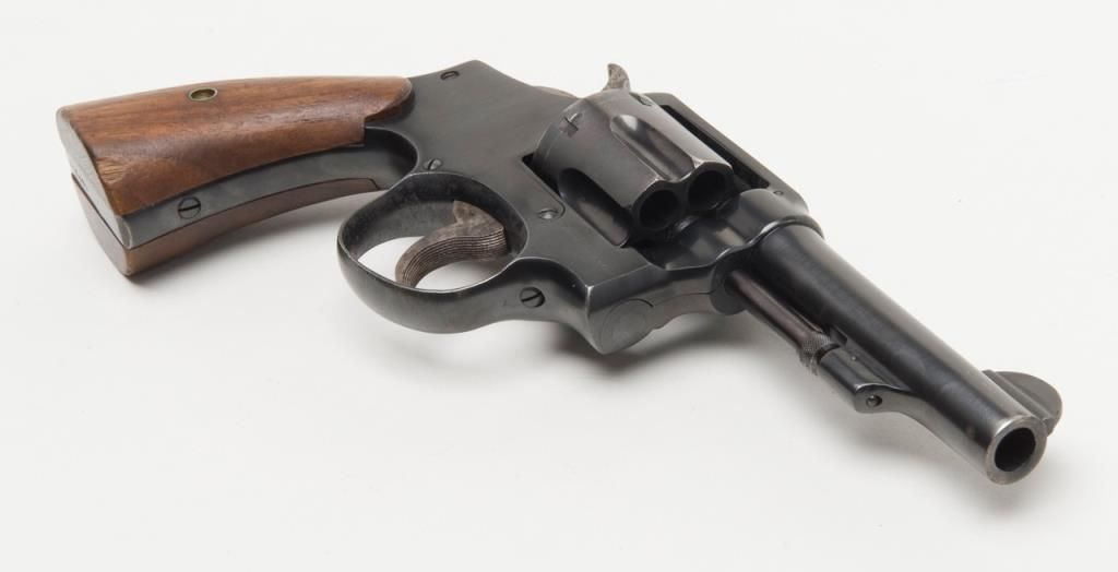 Smith and Wesson Victory Model revolver, cal. .38 Special, Serial #13956. The pistol is in overall very good condition as re-finished, with a 4” blued barrel. The pistol retains nearly all of an older, quality re-finish with slight wear at themuzzle. The smooth wood grips are in overall good condition showing small mars and compressions consistent with use. The action is crisp, bore very good and markings legible on this pistol. The gun comes with a nylon holster. (C+R/PPT).Est.: $250-$350